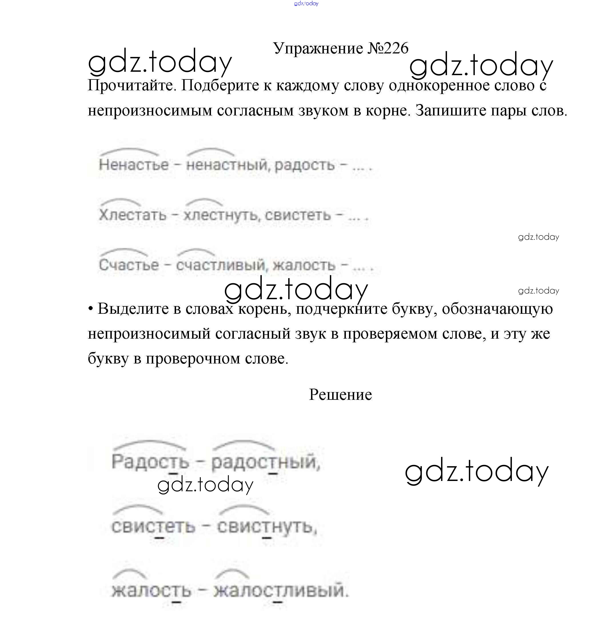 На страницах сайта gdz.today вы найдете учебный и вспомогательный материал, направленный на улучшения знаний школьной программы. ГДЗ - онлайн мир знаний Упражнения Часть 1 226 Учебнику по Русскому языку для 3 класса Канакина, Горецкий Просвещение Школа России 2013
