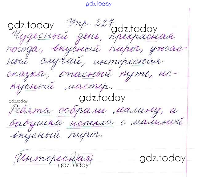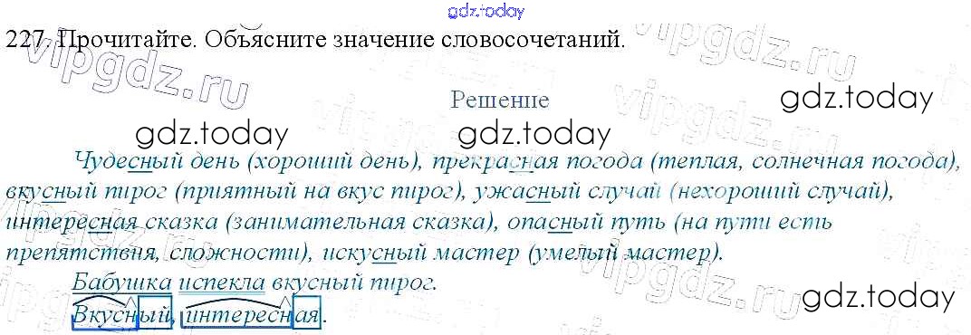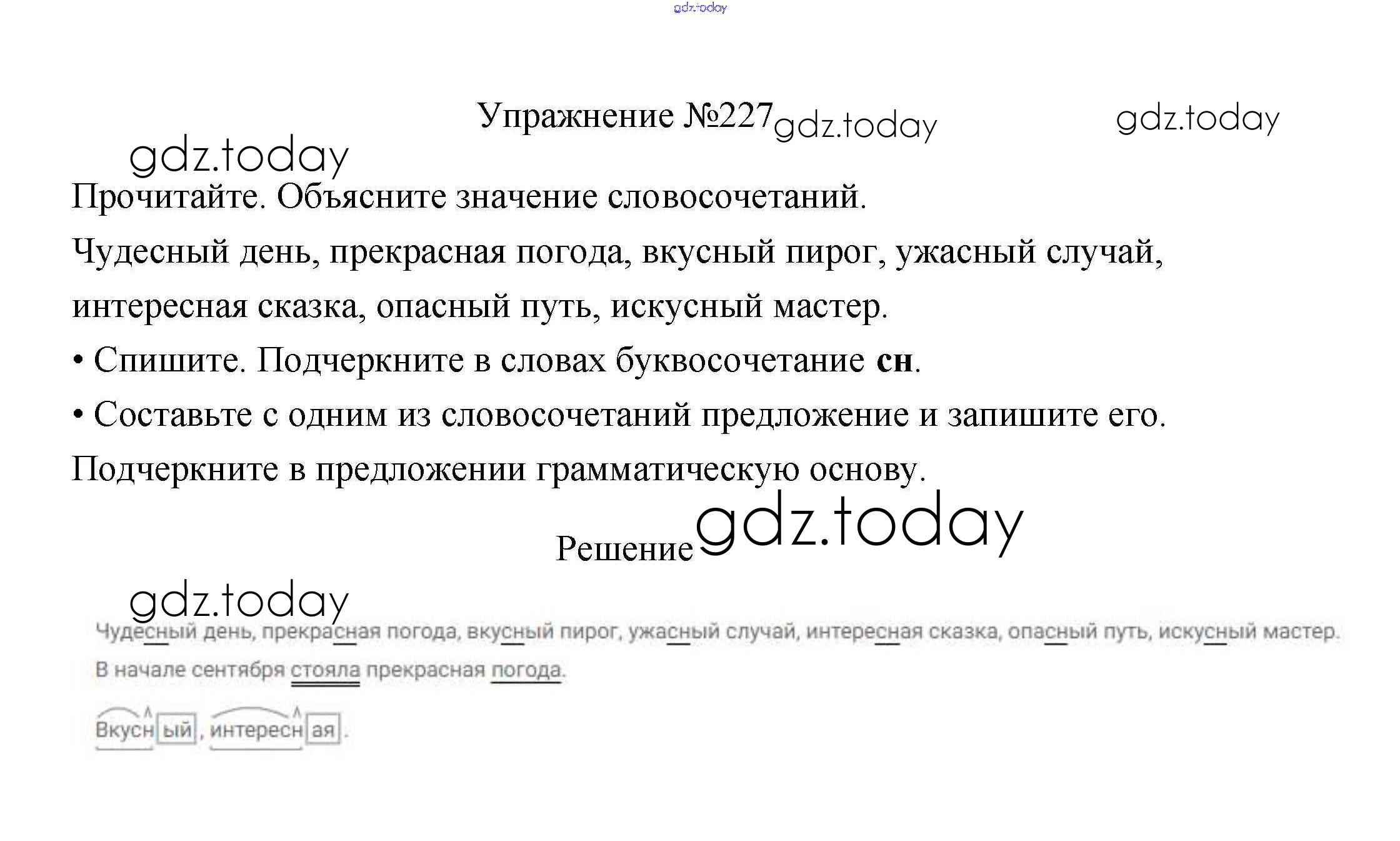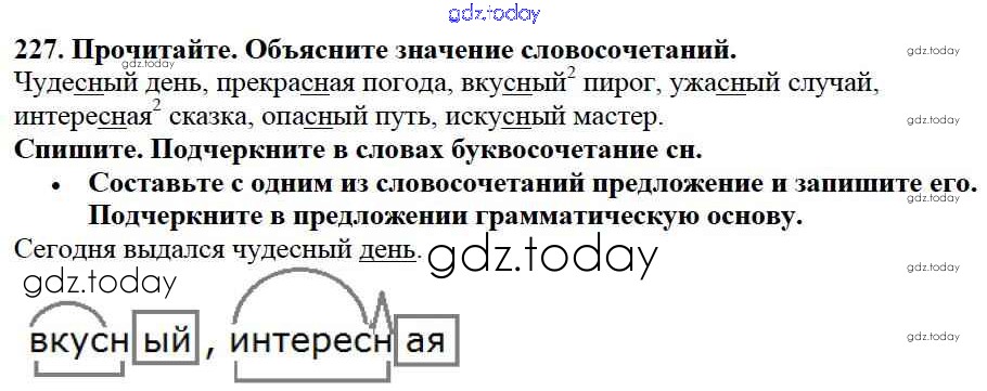 На страницах сайта gdz.today вы найдете учебный и вспомогательный материал, направленный на улучшения знаний школьной программы. ГДЗ - онлайн мир знаний Упражнения Часть 1 227 Учебнику по Русскому языку для 3 класса Канакина, Горецкий Просвещение Школа России 2013