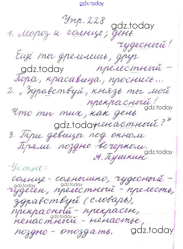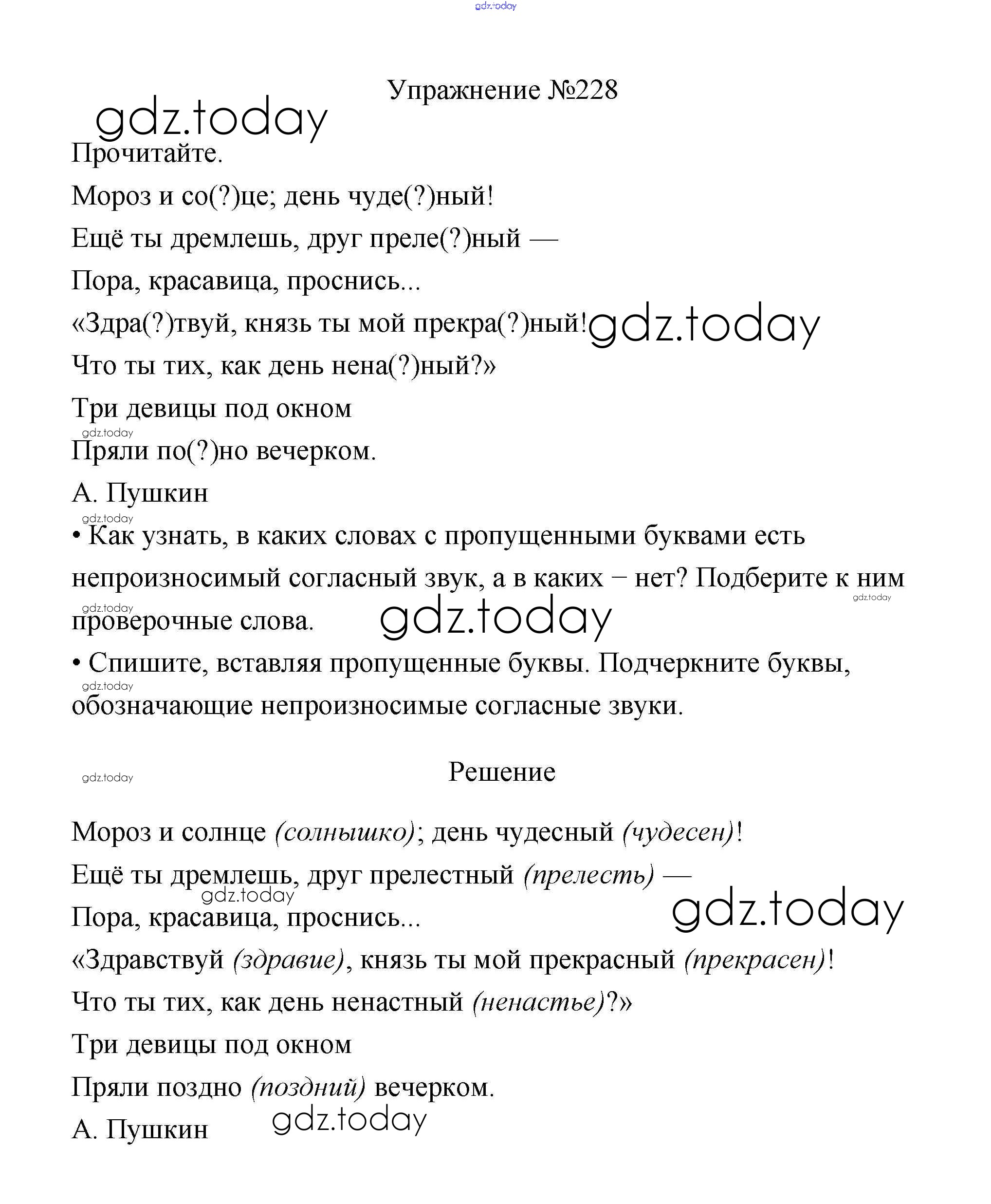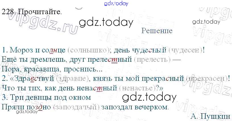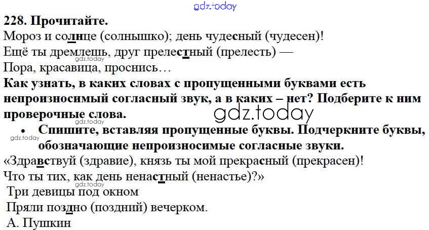 На страницах сайта gdz.today вы найдете учебный и вспомогательный материал, направленный на улучшения знаний школьной программы. ГДЗ - онлайн мир знаний Упражнения Часть 1 228 Учебнику по Русскому языку для 3 класса Канакина, Горецкий Просвещение Школа России 2013