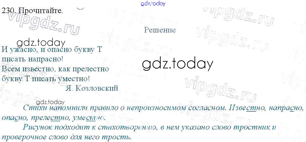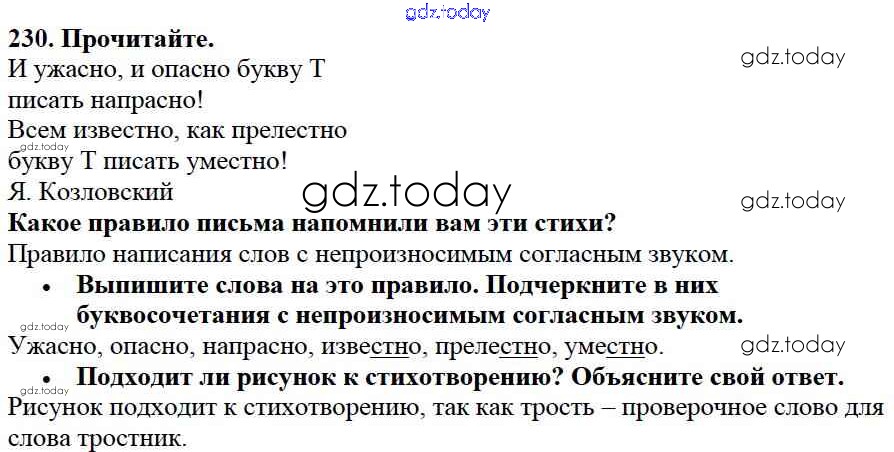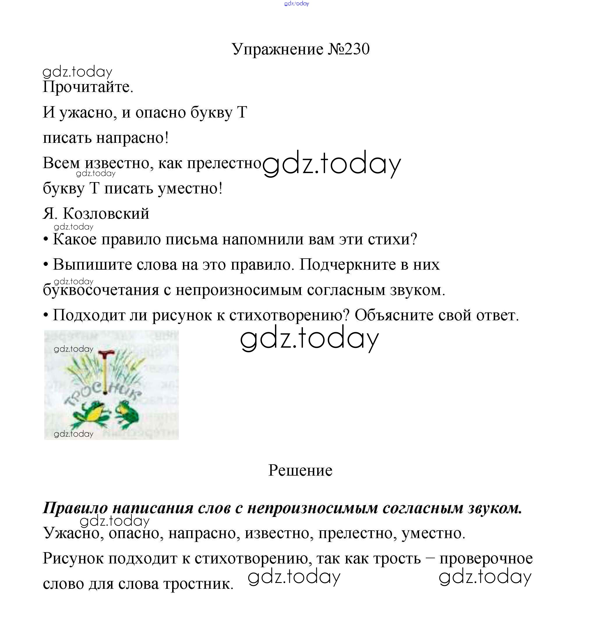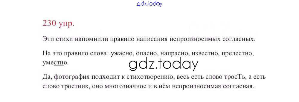 На страницах сайта gdz.today вы найдете учебный и вспомогательный материал, направленный на улучшения знаний школьной программы. ГДЗ - онлайн мир знаний Упражнения Часть 1 230 Учебнику по Русскому языку для 3 класса Канакина, Горецкий Просвещение Школа России 2013