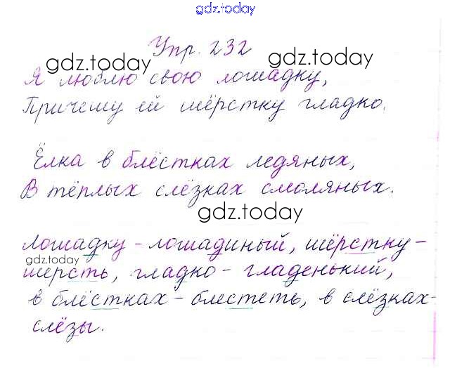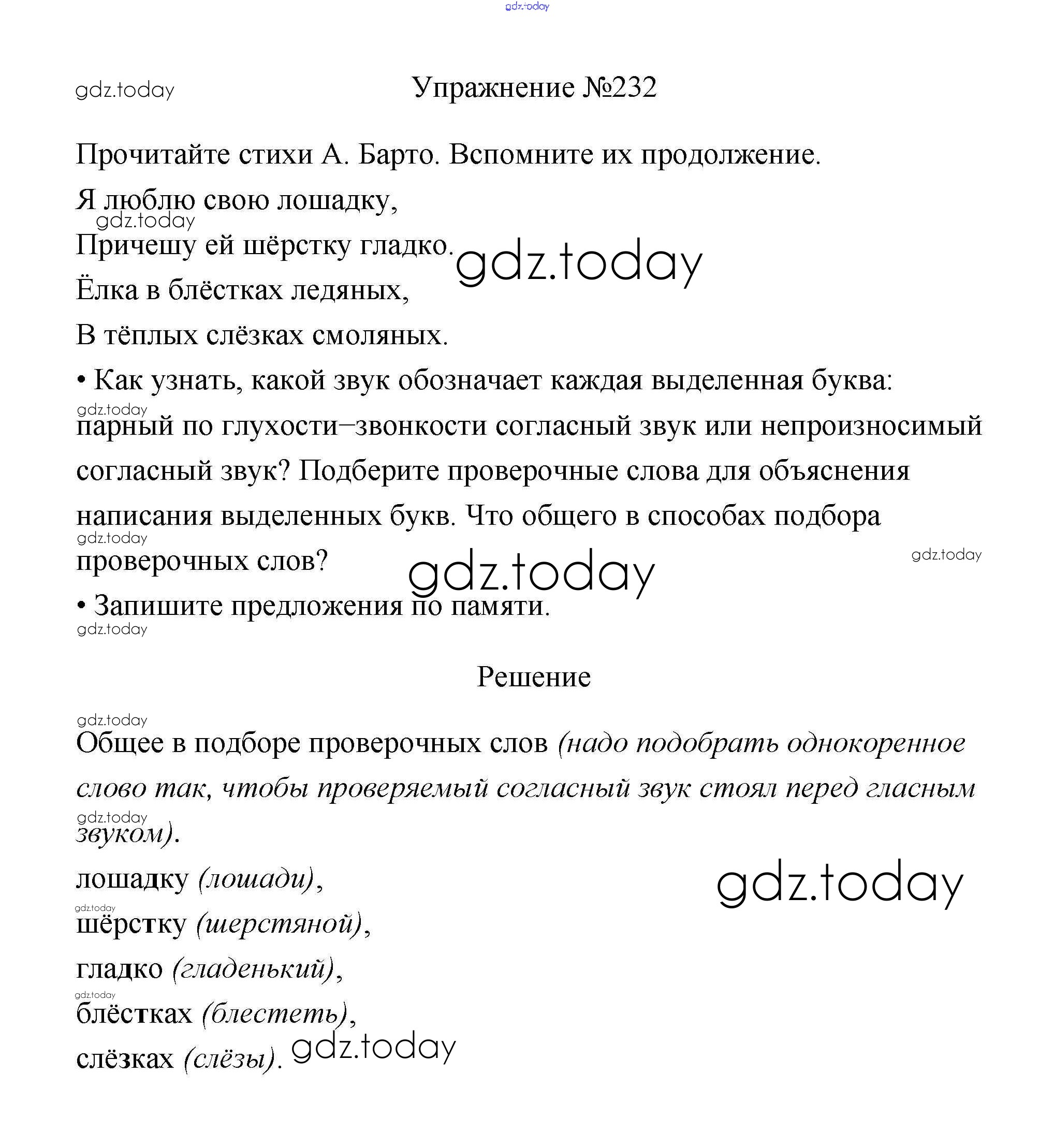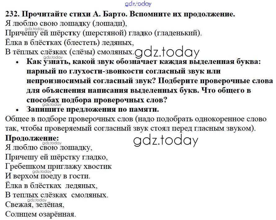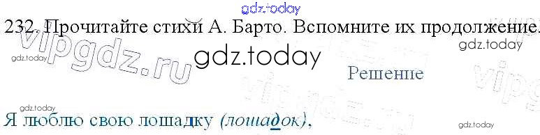 На страницах сайта gdz.today вы найдете учебный и вспомогательный материал, направленный на улучшения знаний школьной программы. ГДЗ - онлайн мир знаний Упражнения Часть 1 232 Учебнику по Русскому языку для 3 класса Канакина, Горецкий Просвещение Школа России 2013