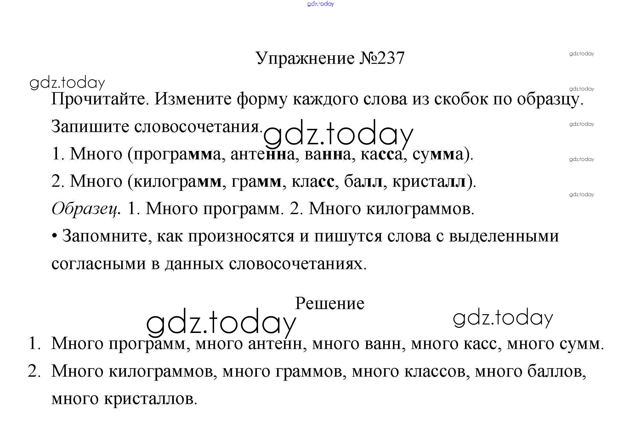 На страницах сайта gdz.today вы найдете учебный и вспомогательный материал, направленный на улучшения знаний школьной программы. ГДЗ - онлайн мир знаний Упражнения Часть 1 237 Учебнику по Русскому языку для 3 класса Канакина, Горецкий Просвещение Школа России 2013