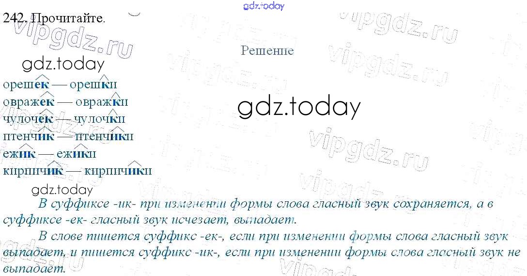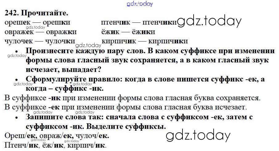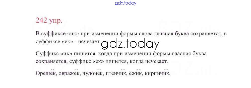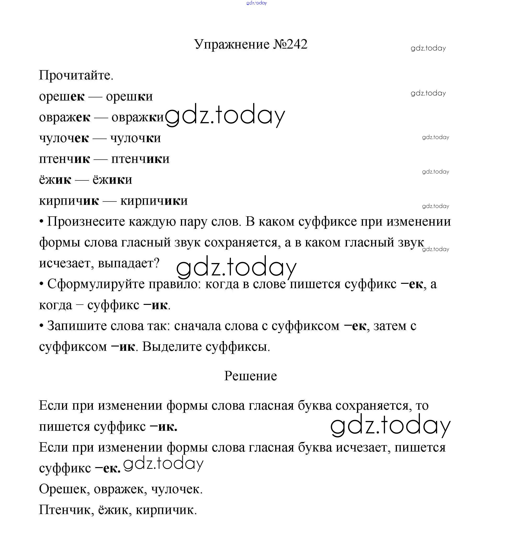 На страницах сайта gdz.today вы найдете учебный и вспомогательный материал, направленный на улучшения знаний школьной программы. ГДЗ - онлайн мир знаний Упражнения Часть 1 242 Учебнику по Русскому языку для 3 класса Канакина, Горецкий Просвещение Школа России 2013