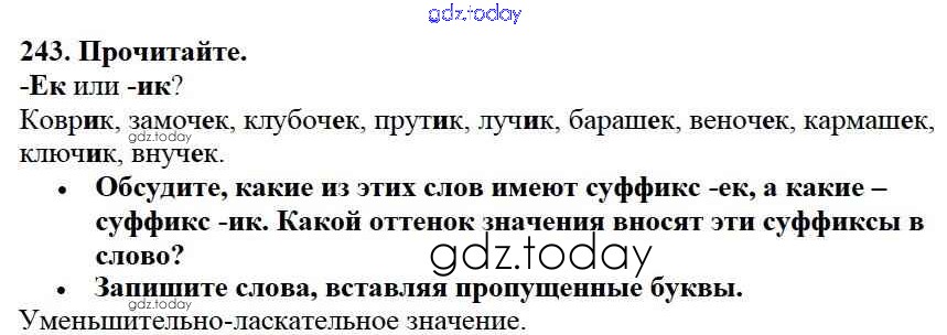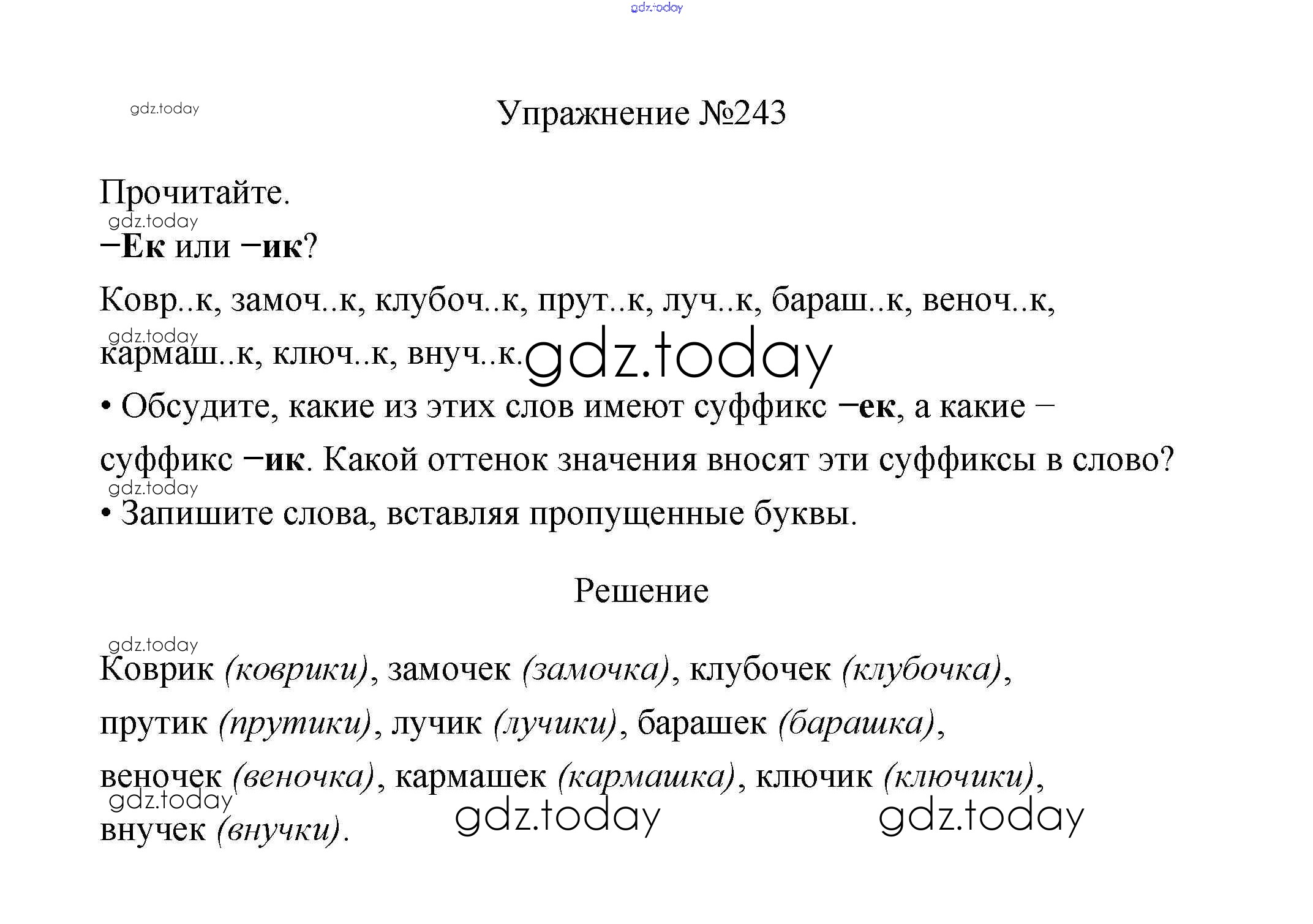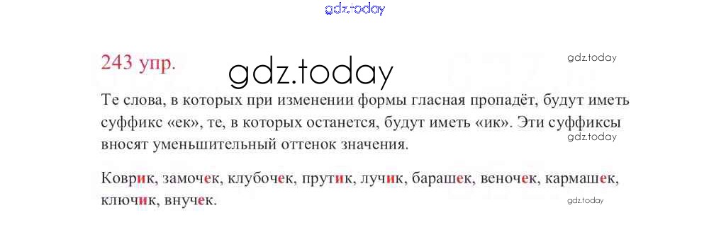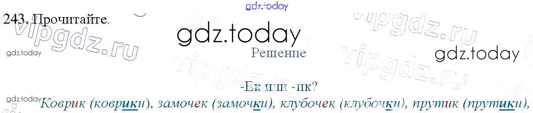 На страницах сайта gdz.today вы найдете учебный и вспомогательный материал, направленный на улучшения знаний школьной программы. ГДЗ - онлайн мир знаний Упражнения Часть 1 243 Учебнику по Русскому языку для 3 класса Канакина, Горецкий Просвещение Школа России 2013
