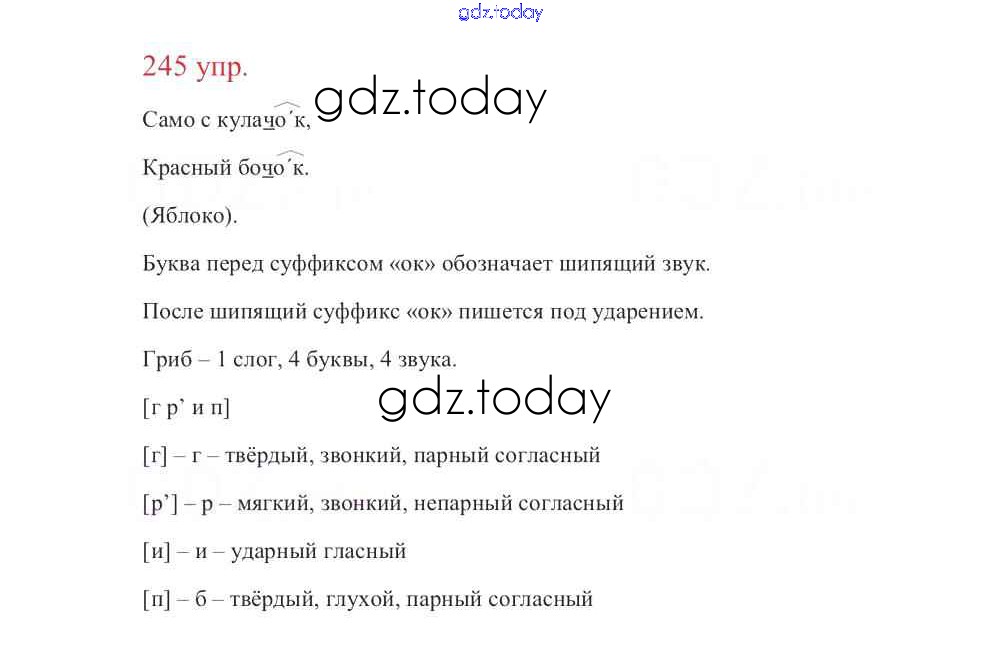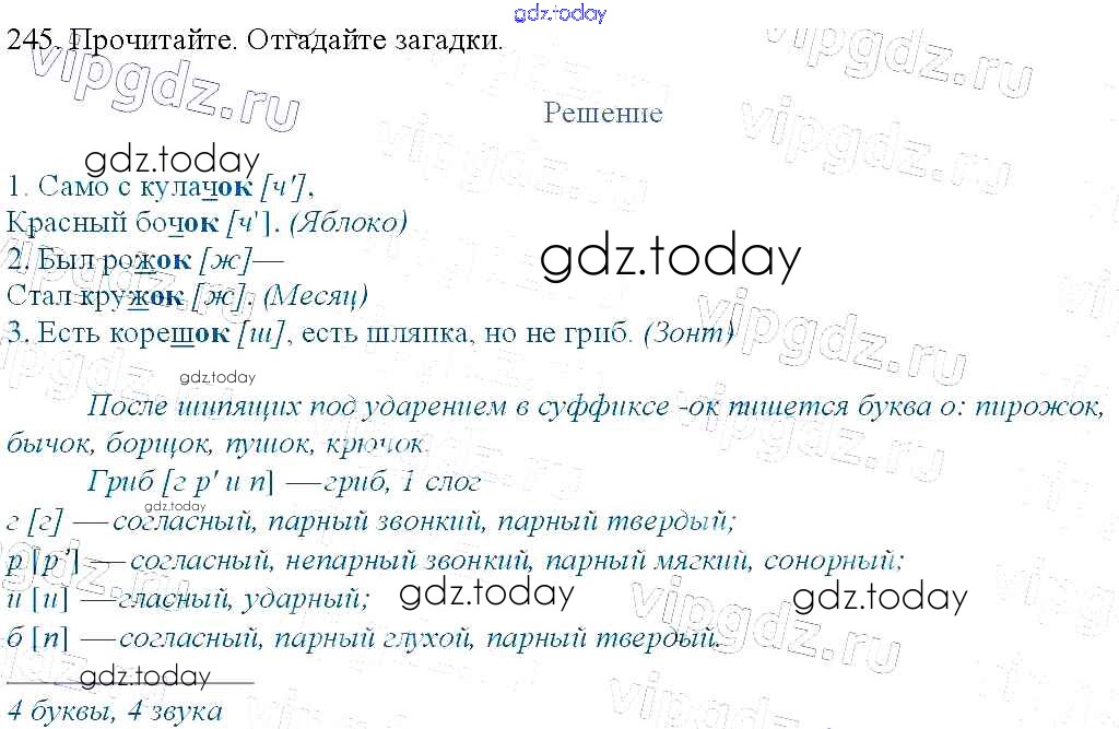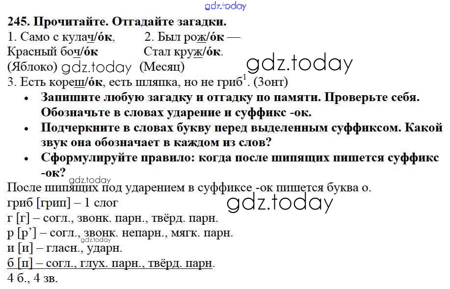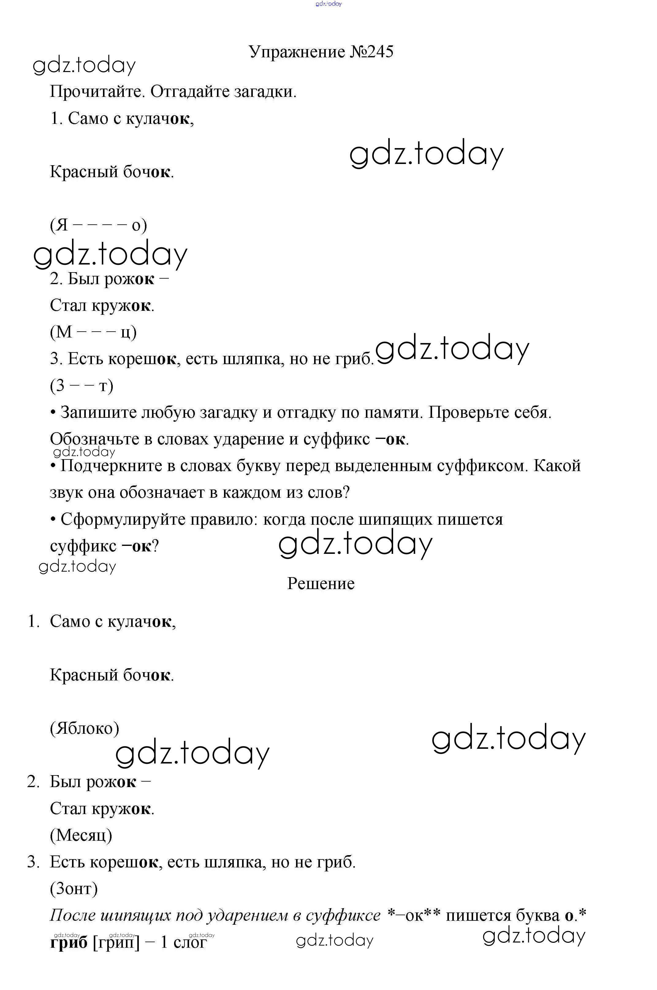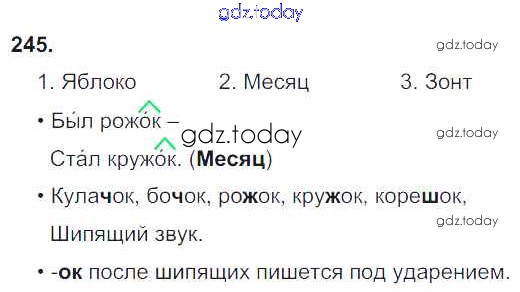 На страницах сайта gdz.today вы найдете учебный и вспомогательный материал, направленный на улучшения знаний школьной программы. ГДЗ - онлайн мир знаний Упражнения Часть 1 245 Учебнику по Русскому языку для 3 класса Канакина, Горецкий Просвещение Школа России 2013