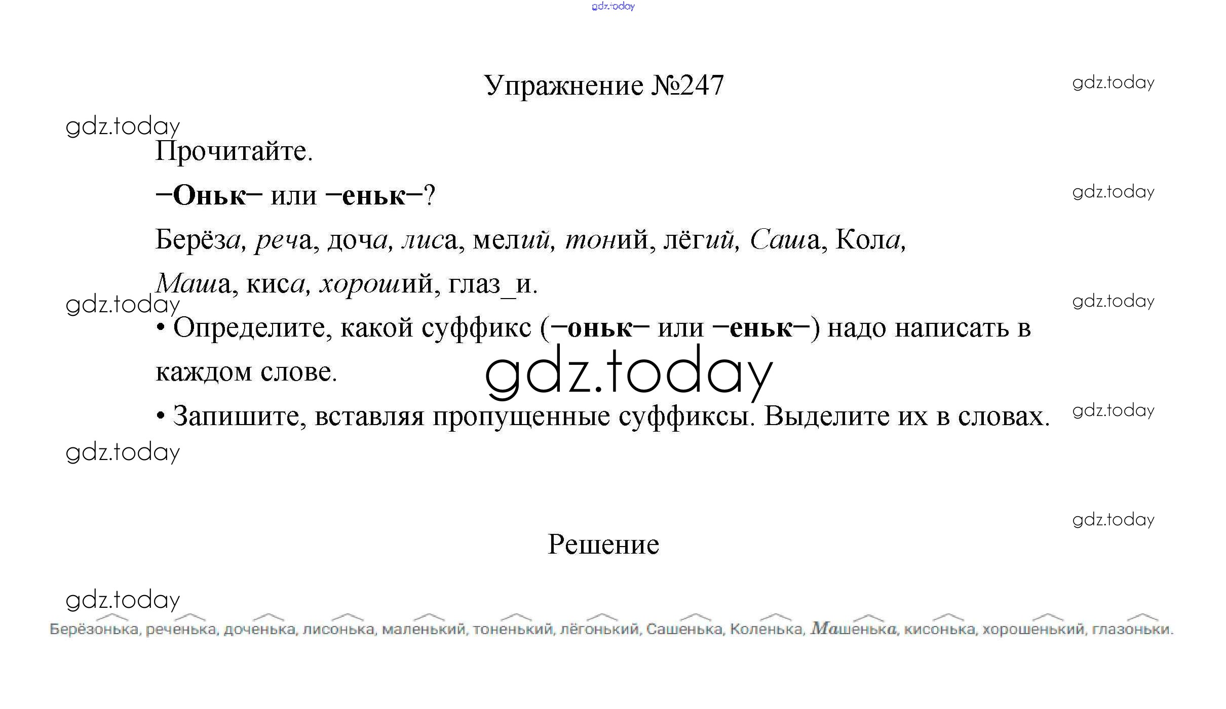 На страницах сайта gdz.today вы найдете учебный и вспомогательный материал, направленный на улучшения знаний школьной программы. ГДЗ - онлайн мир знаний Упражнения Часть 1 247 Учебнику по Русскому языку для 3 класса Канакина, Горецкий Просвещение Школа России 2013