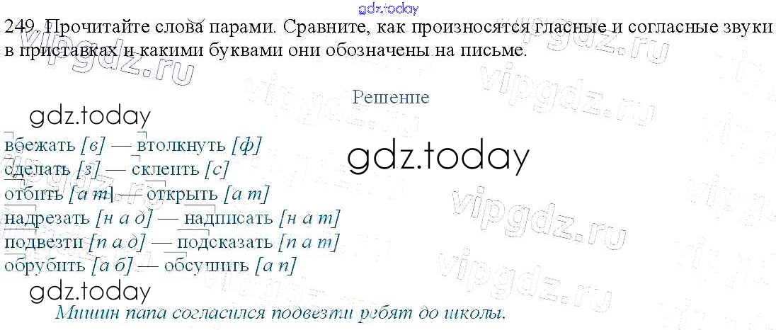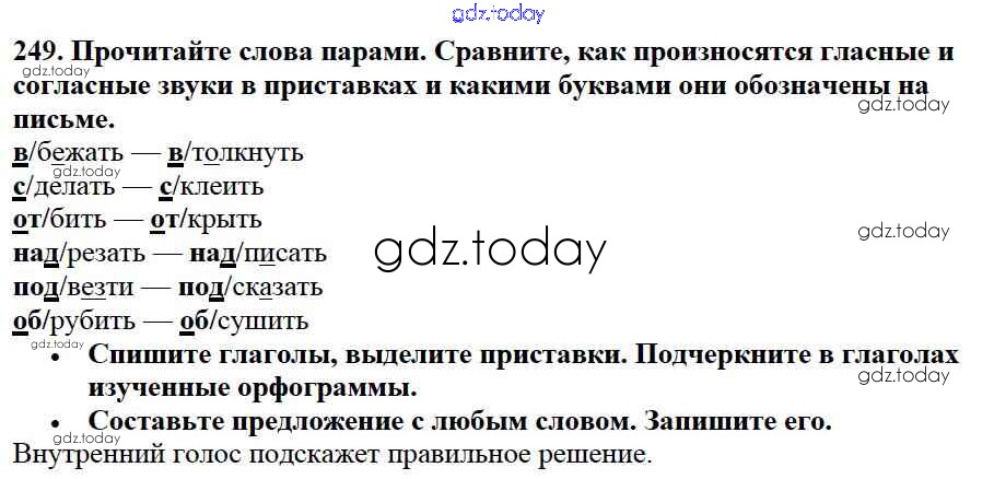 На страницах сайта gdz.today вы найдете учебный и вспомогательный материал, направленный на улучшения знаний школьной программы. ГДЗ - онлайн мир знаний Упражнения Часть 1 249 Учебнику по Русскому языку для 3 класса Канакина, Горецкий Просвещение Школа России 2013