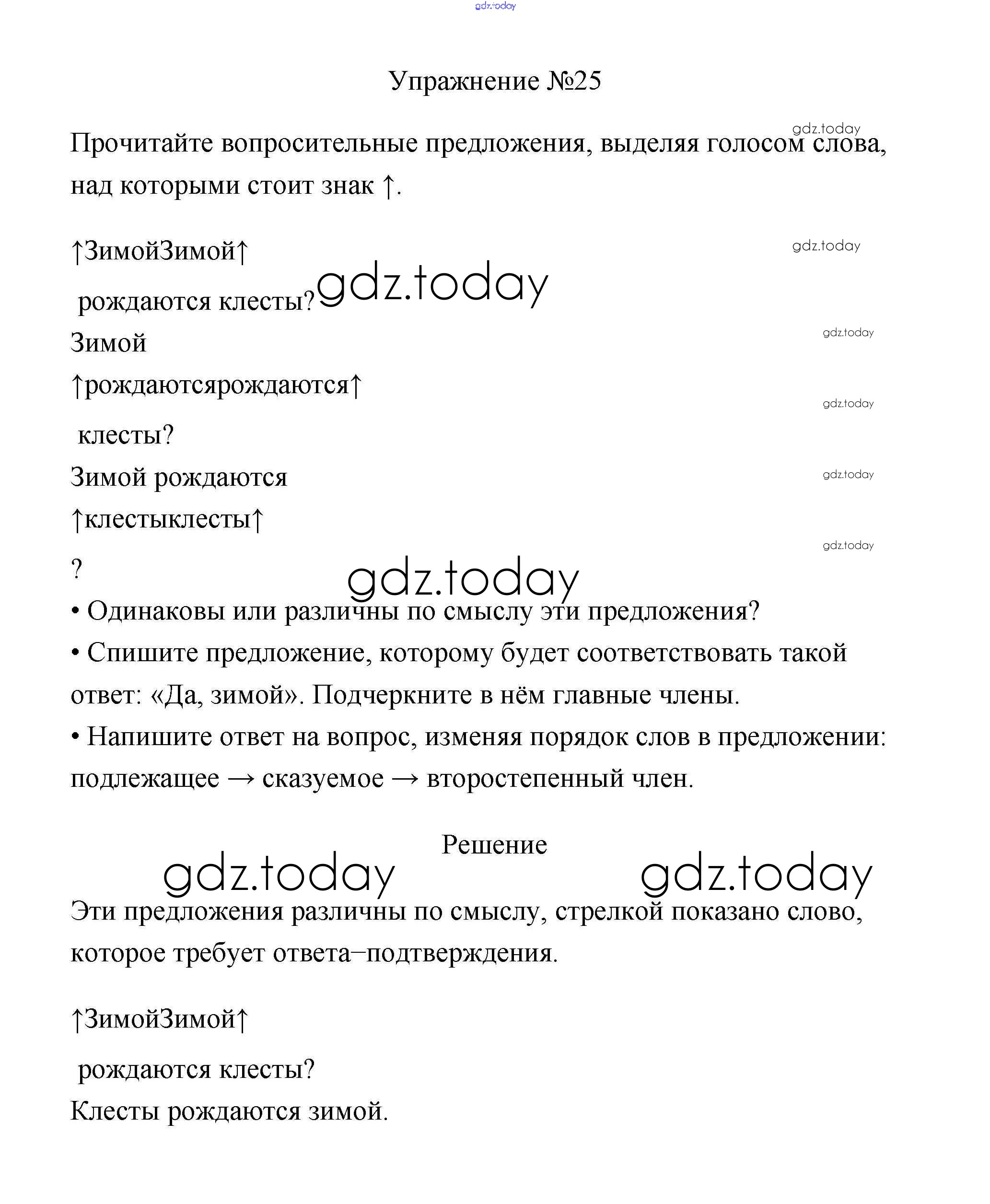 На страницах сайта gdz.today вы найдете учебный и вспомогательный материал, направленный на улучшения знаний школьной программы. ГДЗ - онлайн мир знаний Упражнения Часть 1 25 Учебнику по Русскому языку для 3 класса Канакина, Горецкий Просвещение Школа России 2013