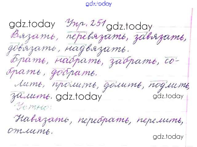 На страницах сайта gdz.today вы найдете учебный и вспомогательный материал, направленный на улучшения знаний школьной программы. ГДЗ - онлайн мир знаний Упражнения Часть 1 251 Учебнику по Русскому языку для 3 класса Канакина, Горецкий Просвещение Школа России 2013