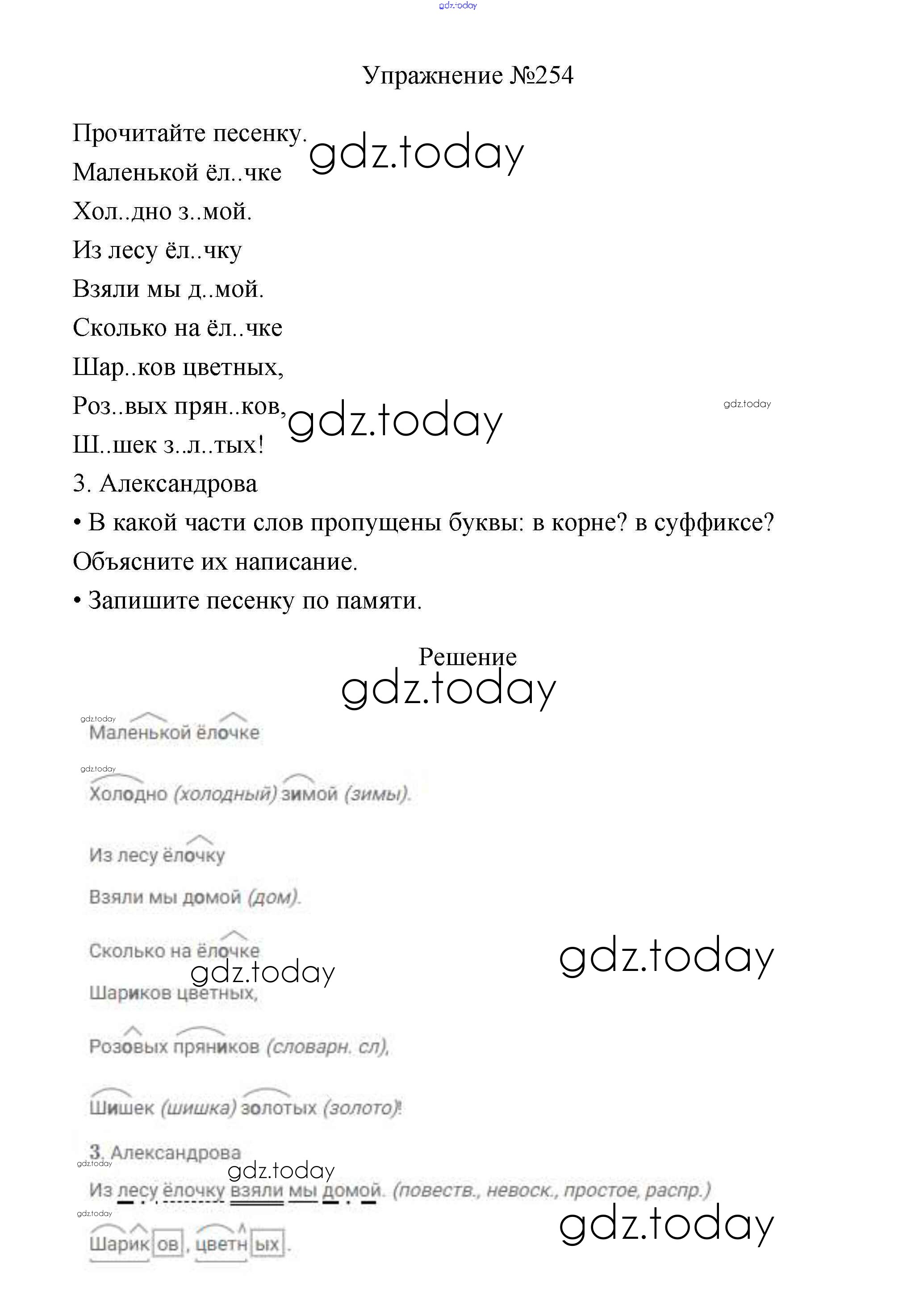 На страницах сайта gdz.today вы найдете учебный и вспомогательный материал, направленный на улучшения знаний школьной программы. ГДЗ - онлайн мир знаний Упражнения Часть 1 254 Учебнику по Русскому языку для 3 класса Канакина, Горецкий Просвещение Школа России 2013
