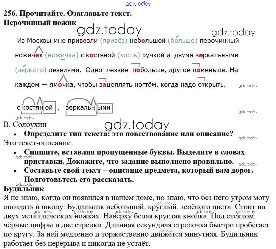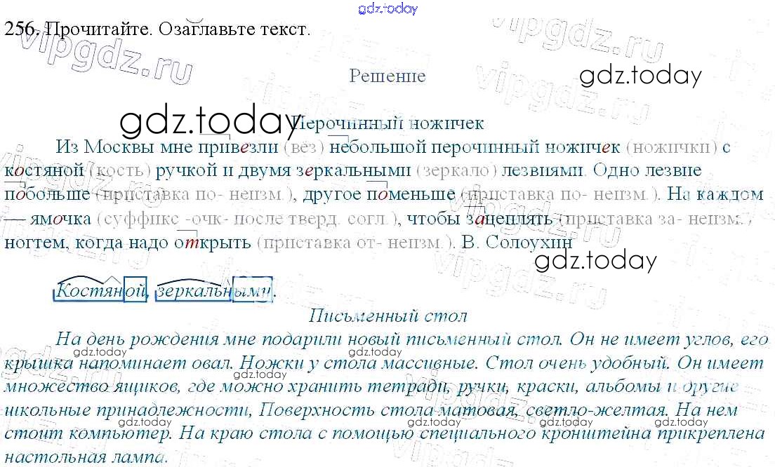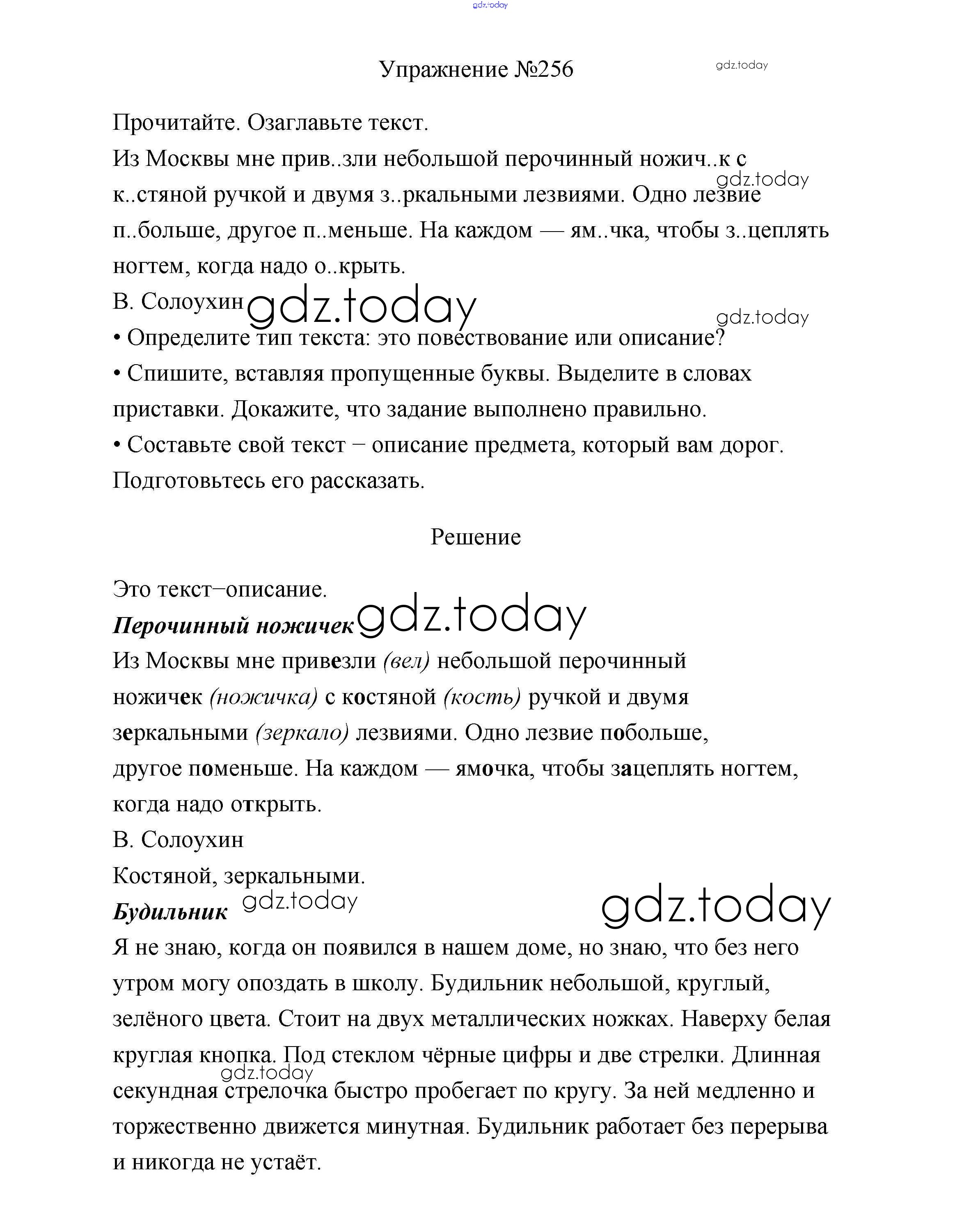 На страницах сайта gdz.today вы найдете учебный и вспомогательный материал, направленный на улучшения знаний школьной программы. ГДЗ - онлайн мир знаний Упражнения Часть 1 256 Учебнику по Русскому языку для 3 класса Канакина, Горецкий Просвещение Школа России 2013