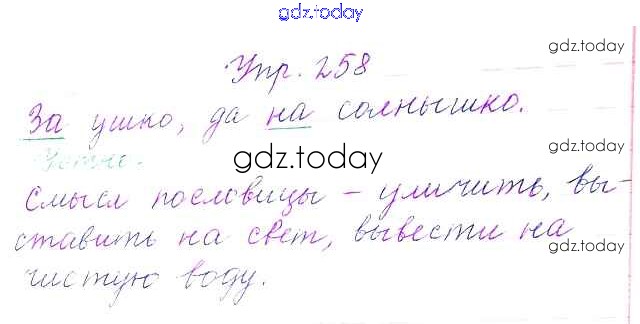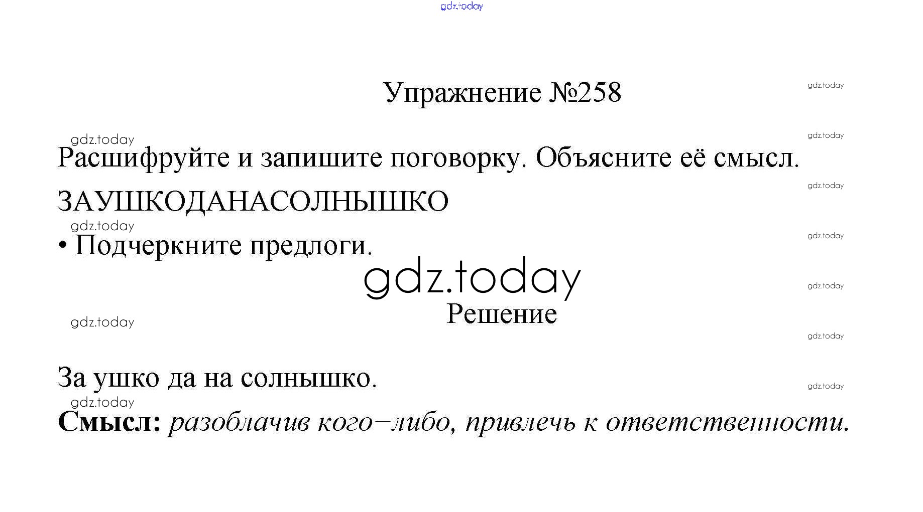 На страницах сайта gdz.today вы найдете учебный и вспомогательный материал, направленный на улучшения знаний школьной программы. ГДЗ - онлайн мир знаний Упражнения Часть 1 258 Учебнику по Русскому языку для 3 класса Канакина, Горецкий Просвещение Школа России 2013