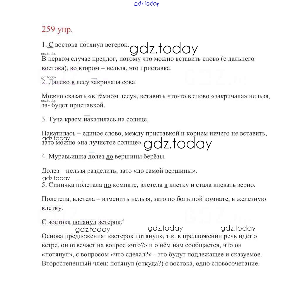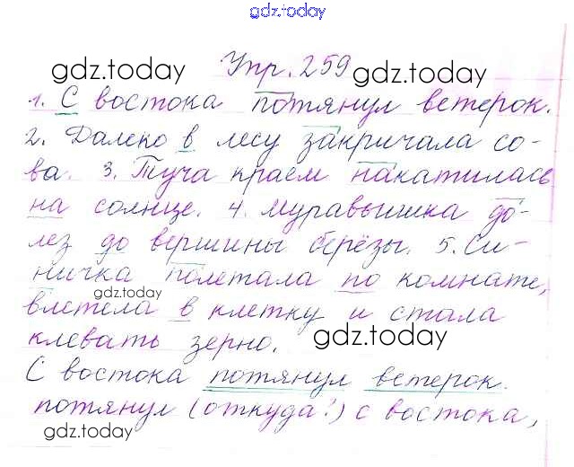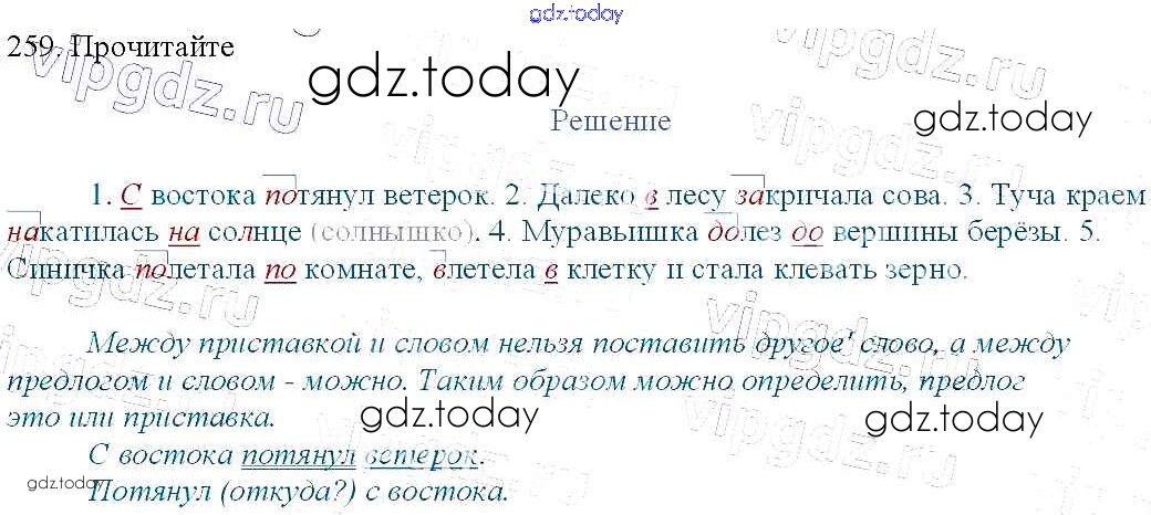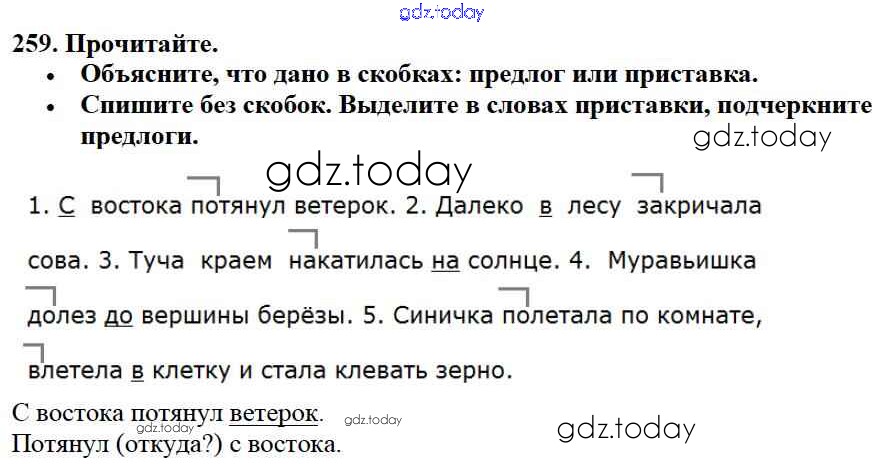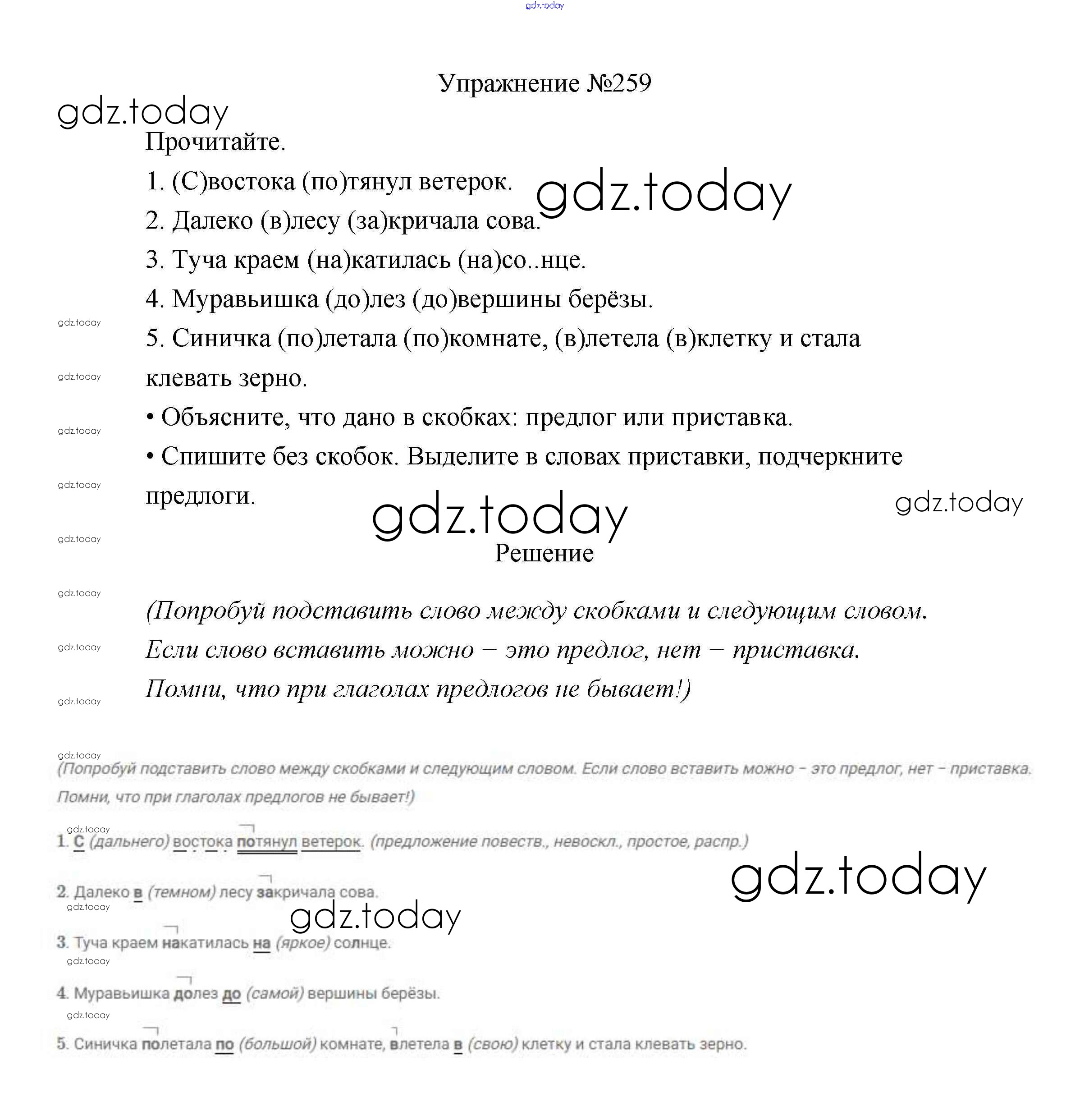 На страницах сайта gdz.today вы найдете учебный и вспомогательный материал, направленный на улучшения знаний школьной программы. ГДЗ - онлайн мир знаний Упражнения Часть 1 259 Учебнику по Русскому языку для 3 класса Канакина, Горецкий Просвещение Школа России 2013