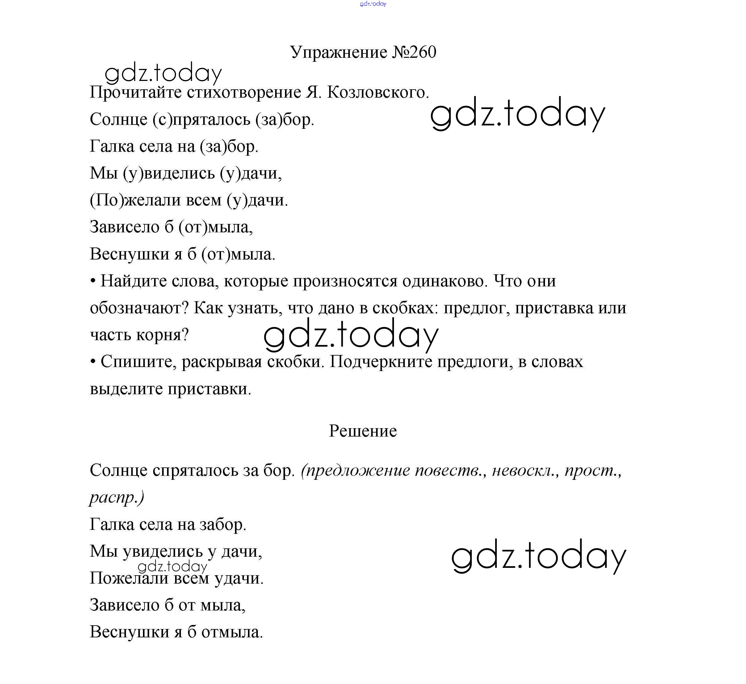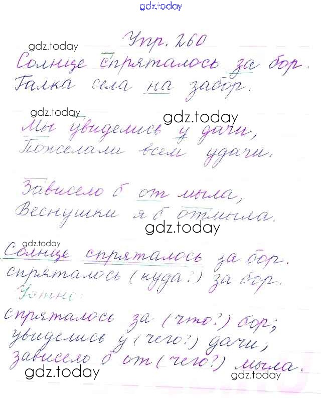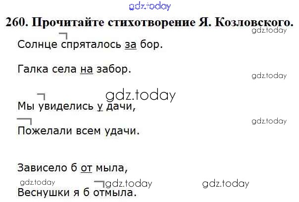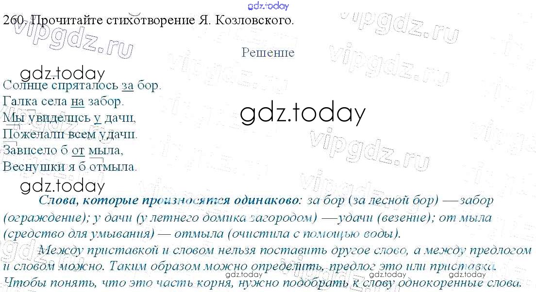 На страницах сайта gdz.today вы найдете учебный и вспомогательный материал, направленный на улучшения знаний школьной программы. ГДЗ - онлайн мир знаний Упражнения Часть 1 260 Учебнику по Русскому языку для 3 класса Канакина, Горецкий Просвещение Школа России 2013