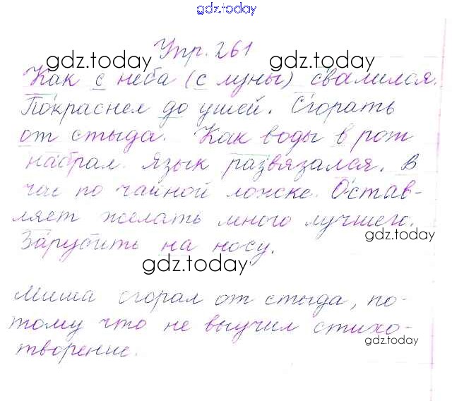 На страницах сайта gdz.today вы найдете учебный и вспомогательный материал, направленный на улучшения знаний школьной программы. ГДЗ - онлайн мир знаний Упражнения Часть 1 261 Учебнику по Русскому языку для 3 класса Канакина, Горецкий Просвещение Школа России 2013
