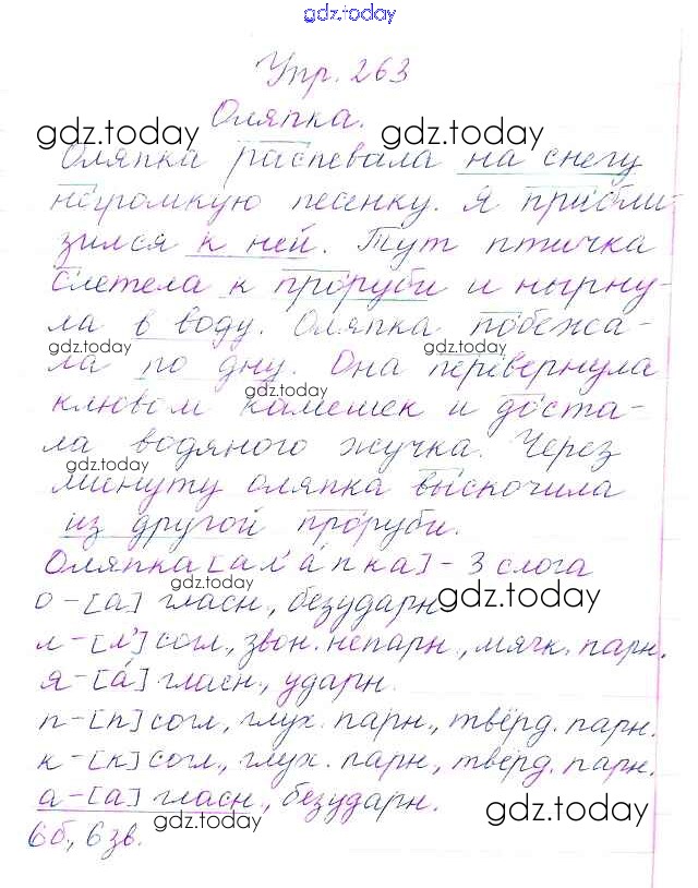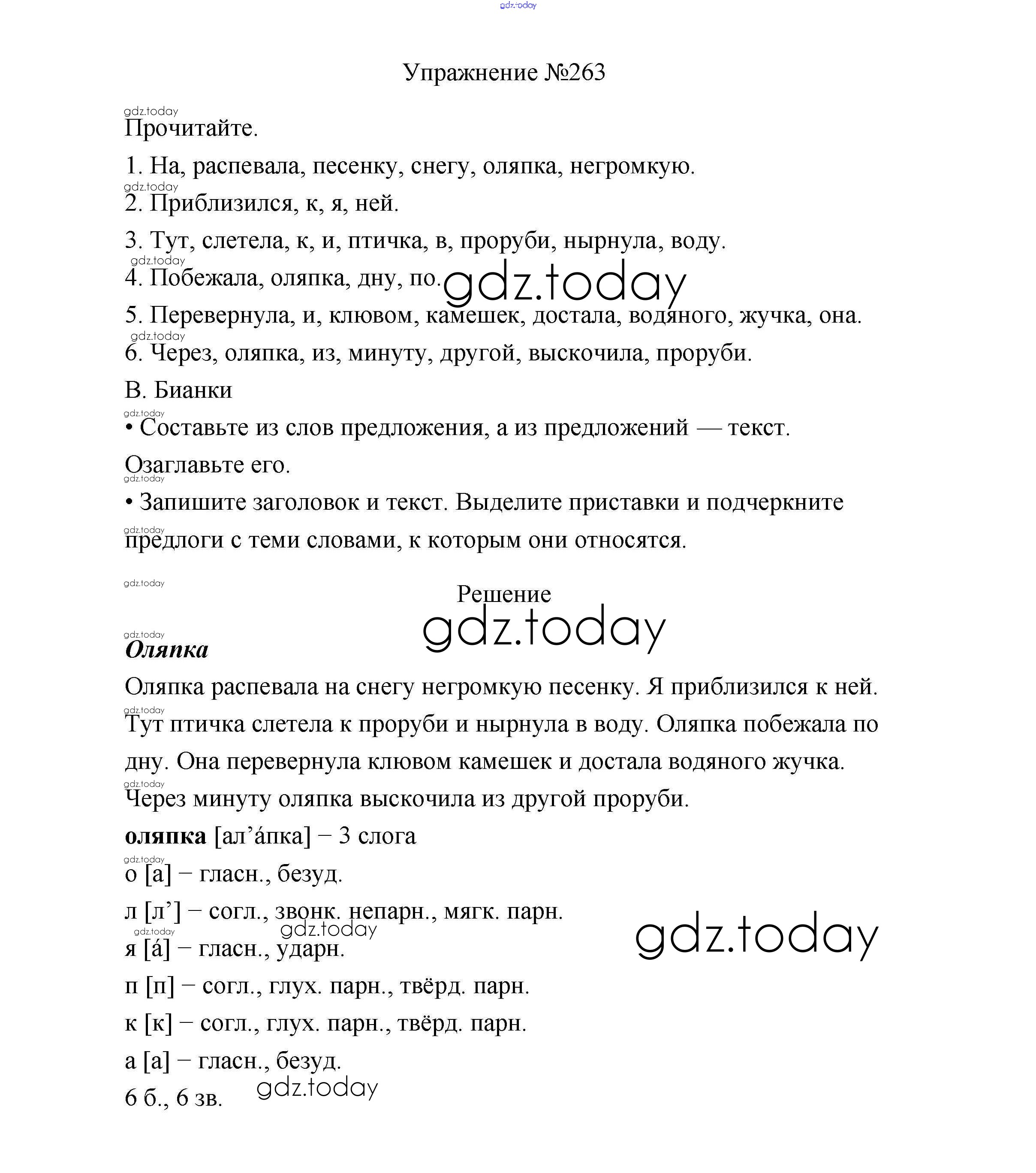 На страницах сайта gdz.today вы найдете учебный и вспомогательный материал, направленный на улучшения знаний школьной программы. ГДЗ - онлайн мир знаний Упражнения Часть 1 263 Учебнику по Русскому языку для 3 класса Канакина, Горецкий Просвещение Школа России 2013