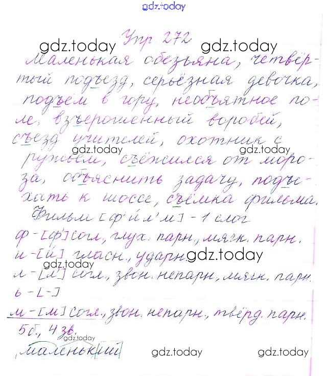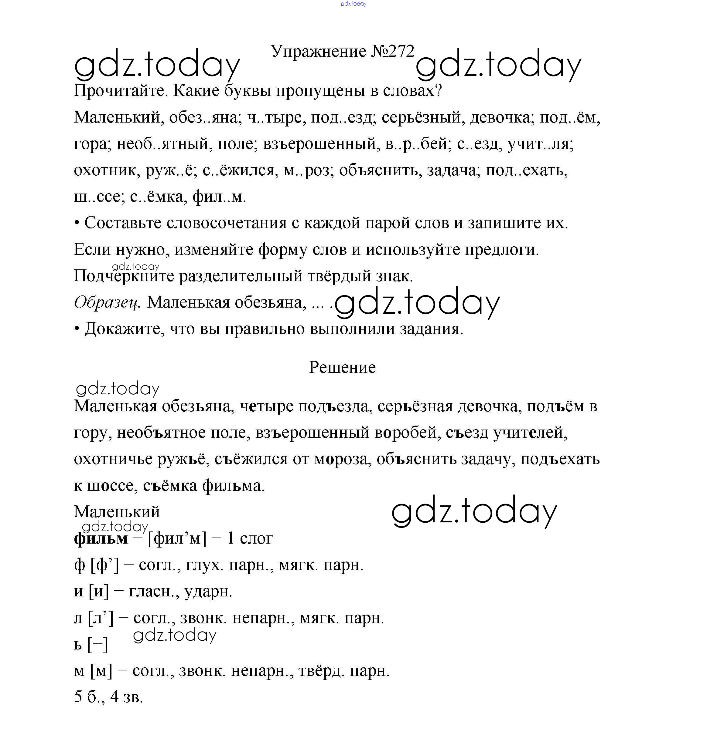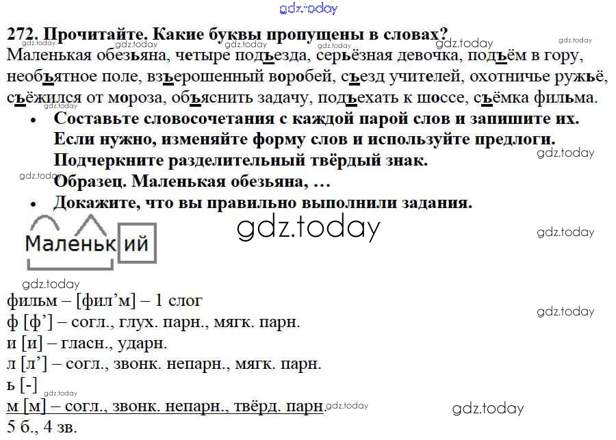 На страницах сайта gdz.today вы найдете учебный и вспомогательный материал, направленный на улучшения знаний школьной программы. ГДЗ - онлайн мир знаний Упражнения Часть 1 272 Учебнику по Русскому языку для 3 класса Канакина, Горецкий Просвещение Школа России 2013