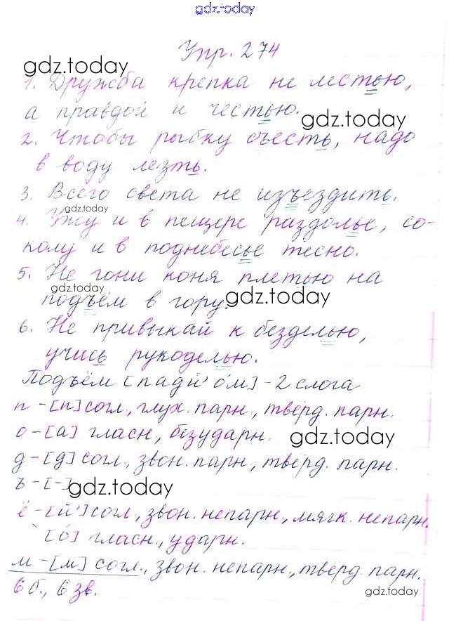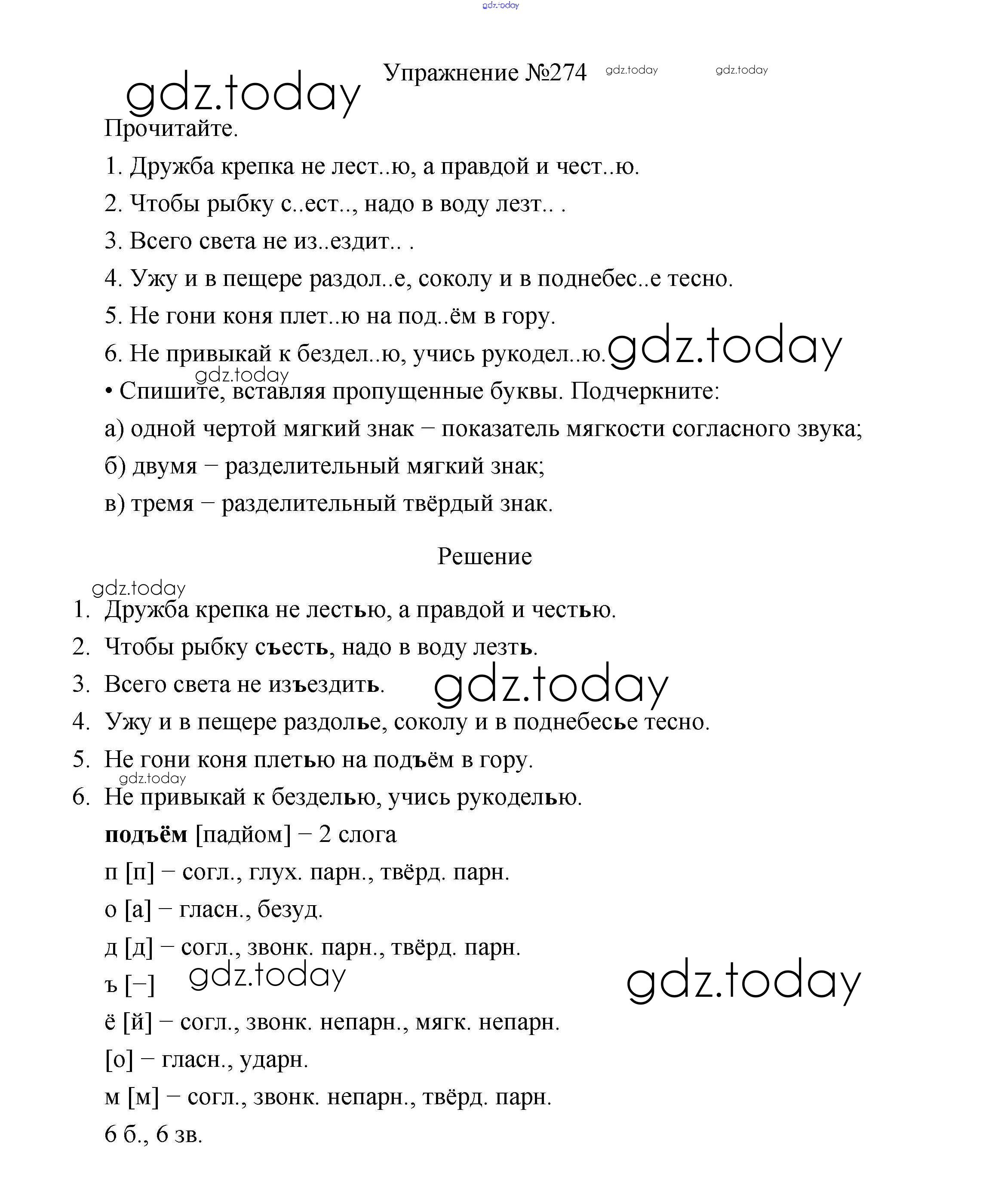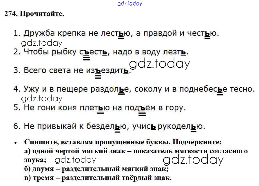 На страницах сайта gdz.today вы найдете учебный и вспомогательный материал, направленный на улучшения знаний школьной программы. ГДЗ - онлайн мир знаний Упражнения Часть 1 274 Учебнику по Русскому языку для 3 класса Канакина, Горецкий Просвещение Школа России 2013