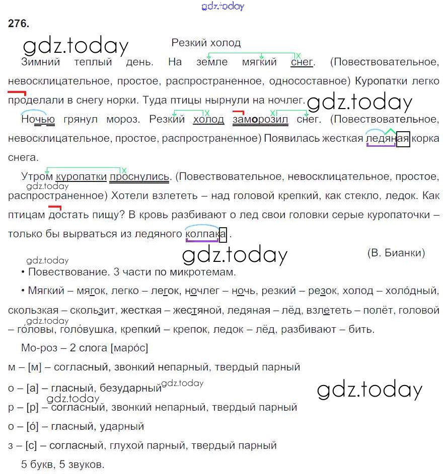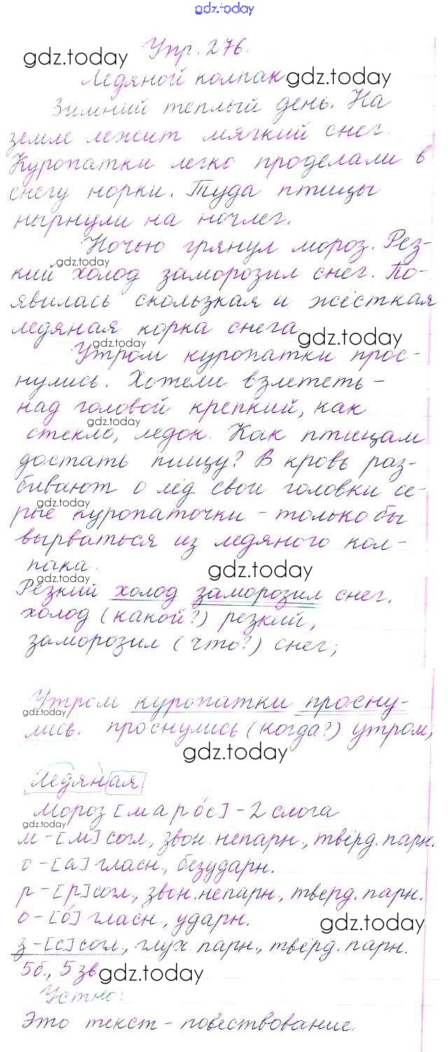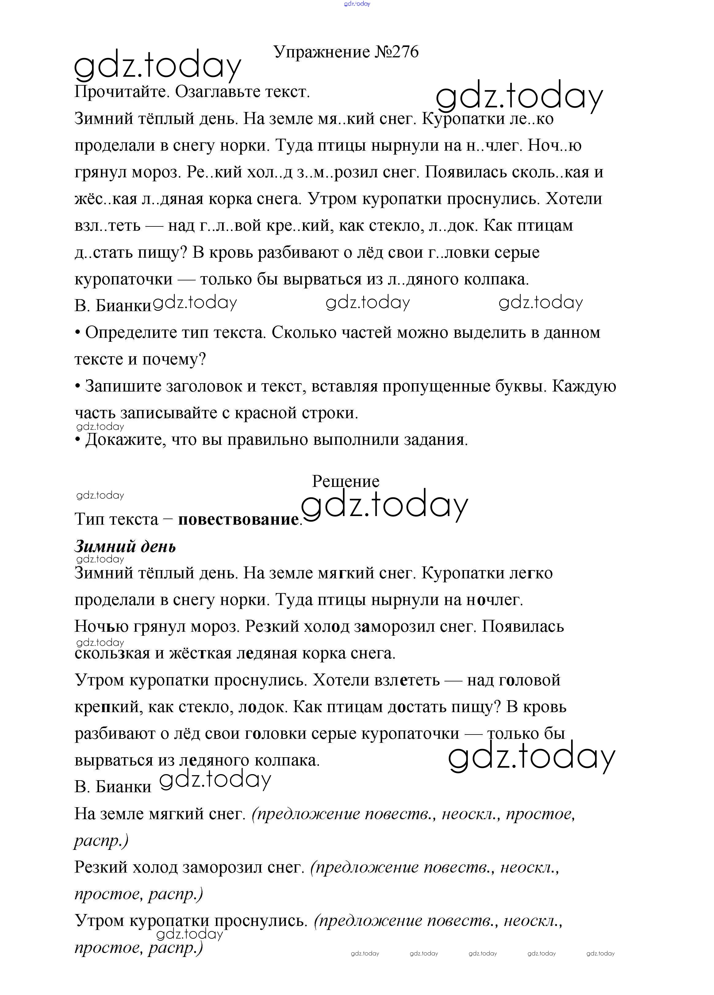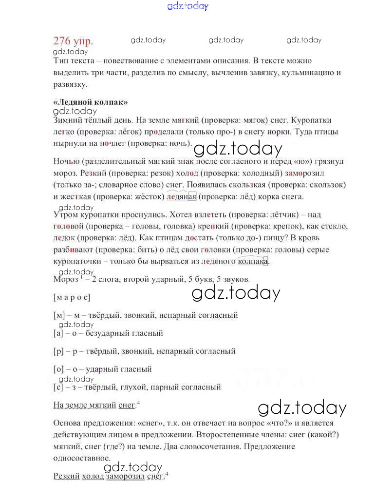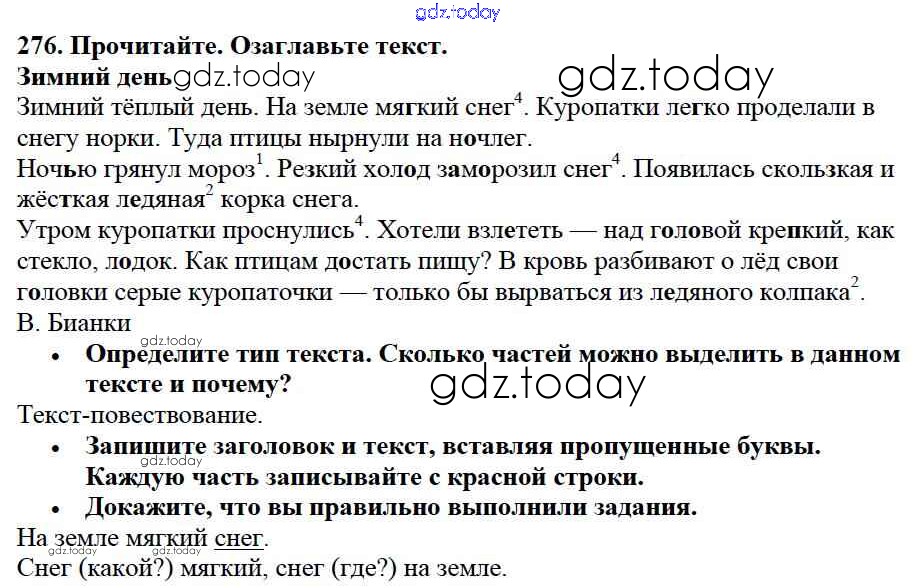На страницах сайта gdz.today вы найдете учебный и вспомогательный материал, направленный на улучшения знаний школьной программы. ГДЗ - онлайн мир знаний Упражнения Часть 1 276 Учебнику по Русскому языку для 3 класса Канакина, Горецкий Просвещение Школа России 2013
