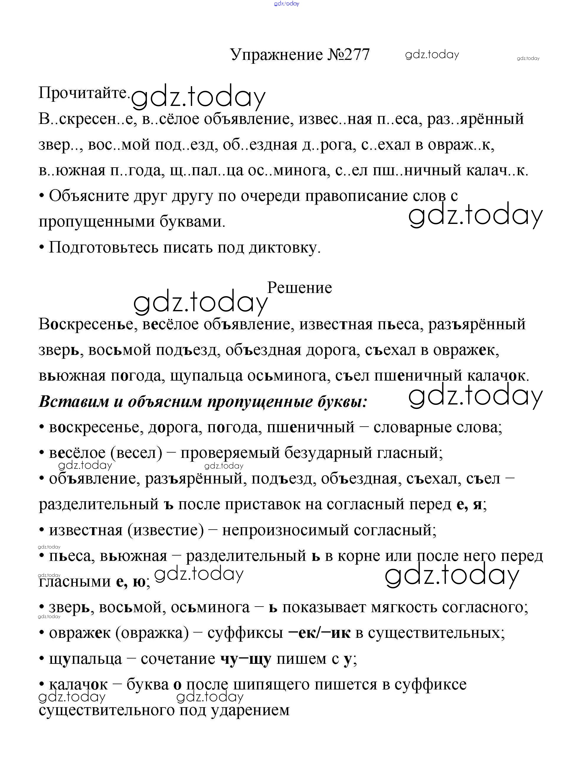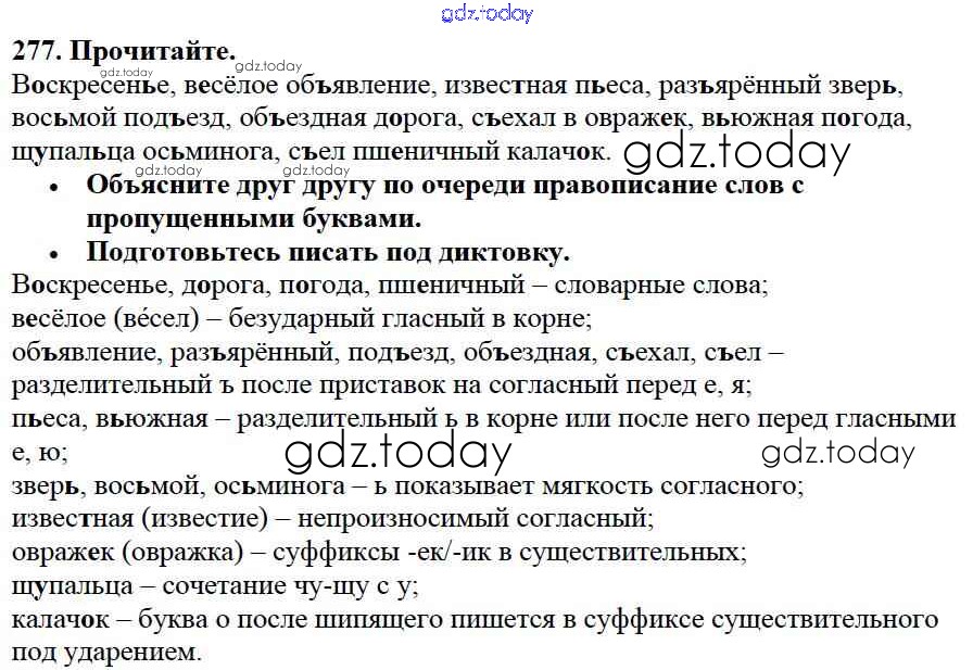 На страницах сайта gdz.today вы найдете учебный и вспомогательный материал, направленный на улучшения знаний школьной программы. ГДЗ - онлайн мир знаний Упражнения Часть 1 277 Учебнику по Русскому языку для 3 класса Канакина, Горецкий Просвещение Школа России 2013