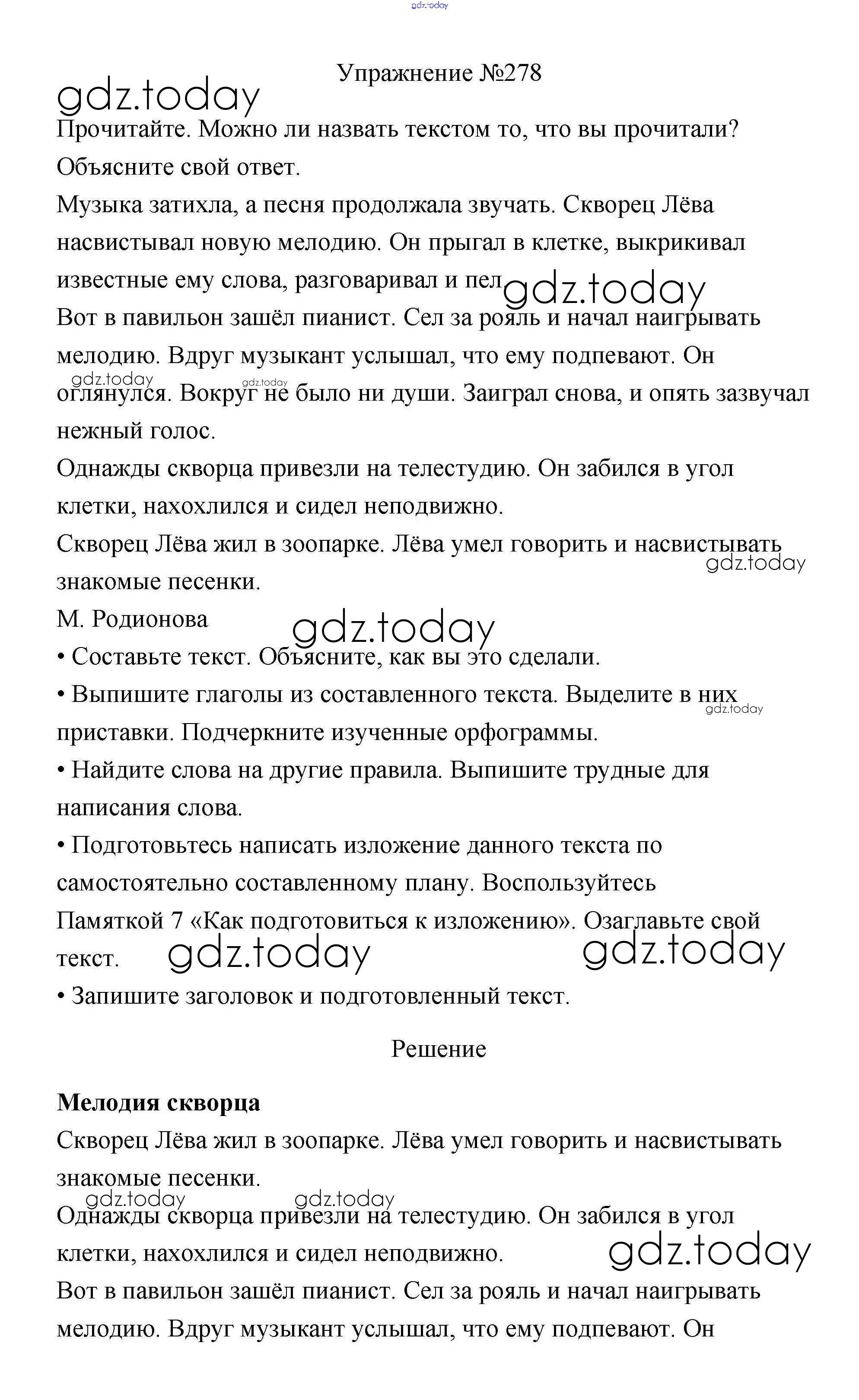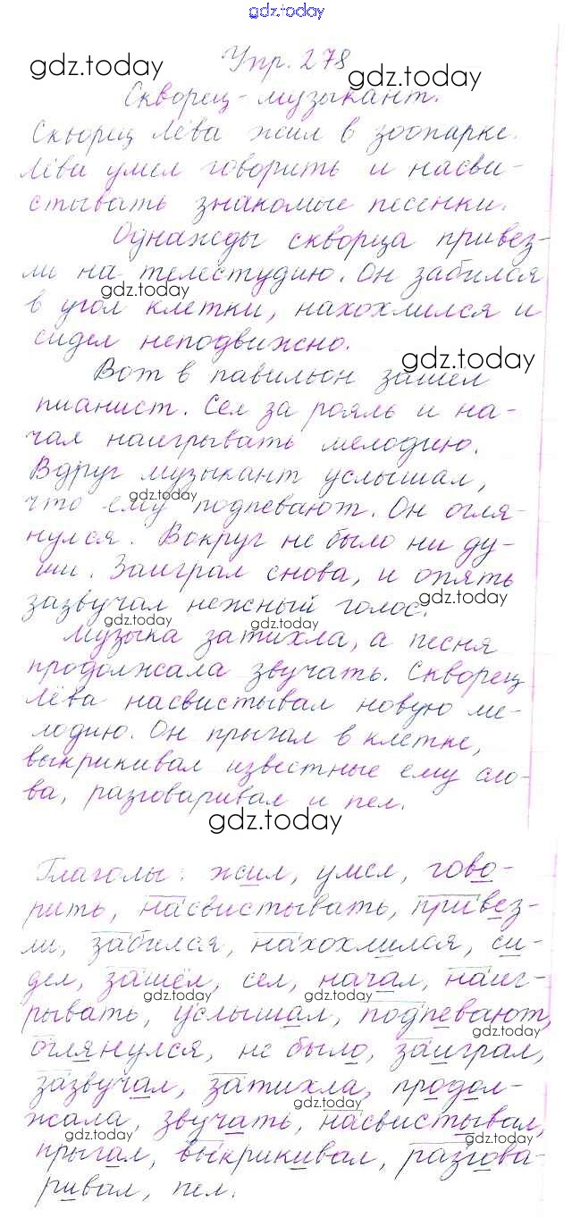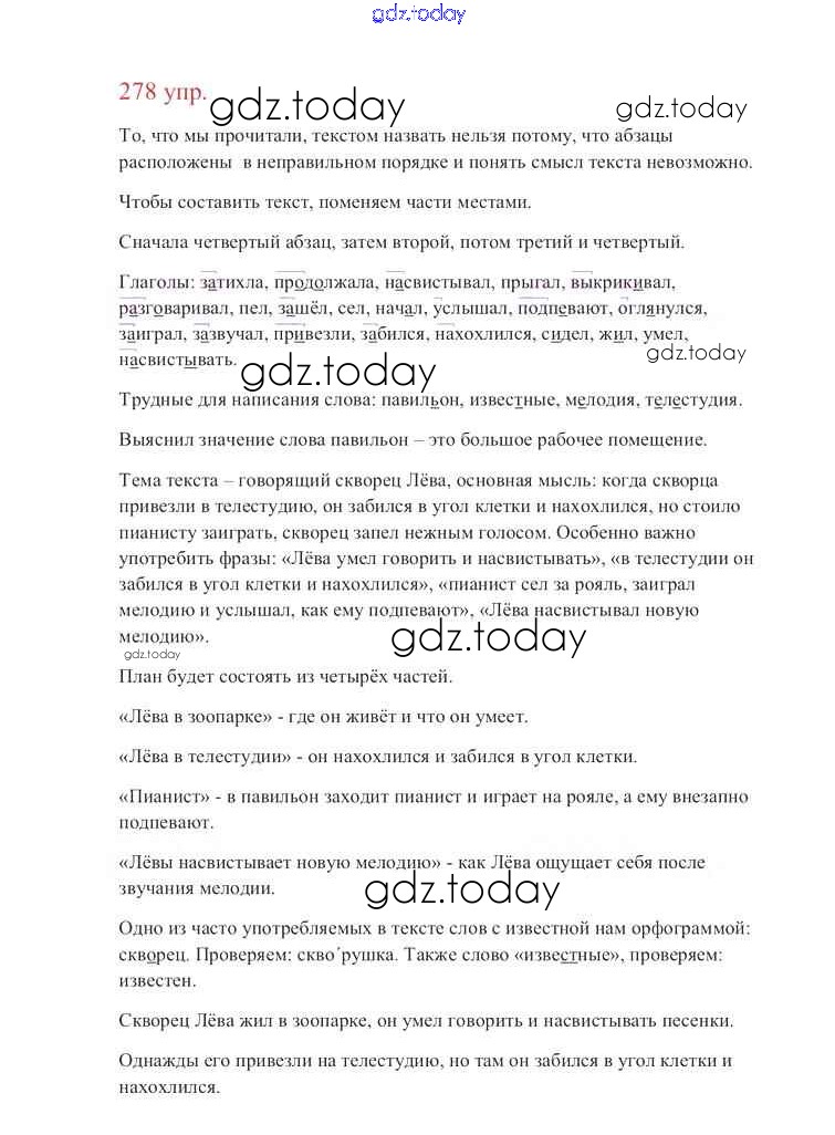 На страницах сайта gdz.today вы найдете учебный и вспомогательный материал, направленный на улучшения знаний школьной программы. ГДЗ - онлайн мир знаний Упражнения Часть 1 278 Учебнику по Русскому языку для 3 класса Канакина, Горецкий Просвещение Школа России 2013
