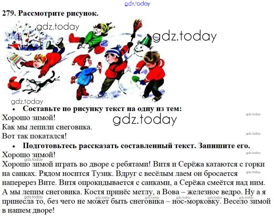 На страницах сайта gdz.today вы найдете учебный и вспомогательный материал, направленный на улучшения знаний школьной программы. ГДЗ - онлайн мир знаний Упражнения Часть 1 279 Учебнику по Русскому языку для 3 класса Канакина, Горецкий Просвещение Школа России 2013