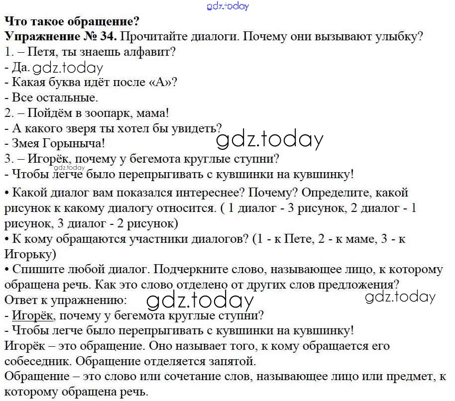 На страницах сайта gdz.today вы найдете учебный и вспомогательный материал, направленный на улучшения знаний школьной программы. ГДЗ - онлайн мир знаний Упражнения Часть 1 34 Учебнику по Русскому языку для 3 класса Канакина, Горецкий Просвещение Школа России 2013