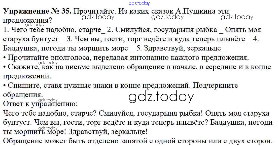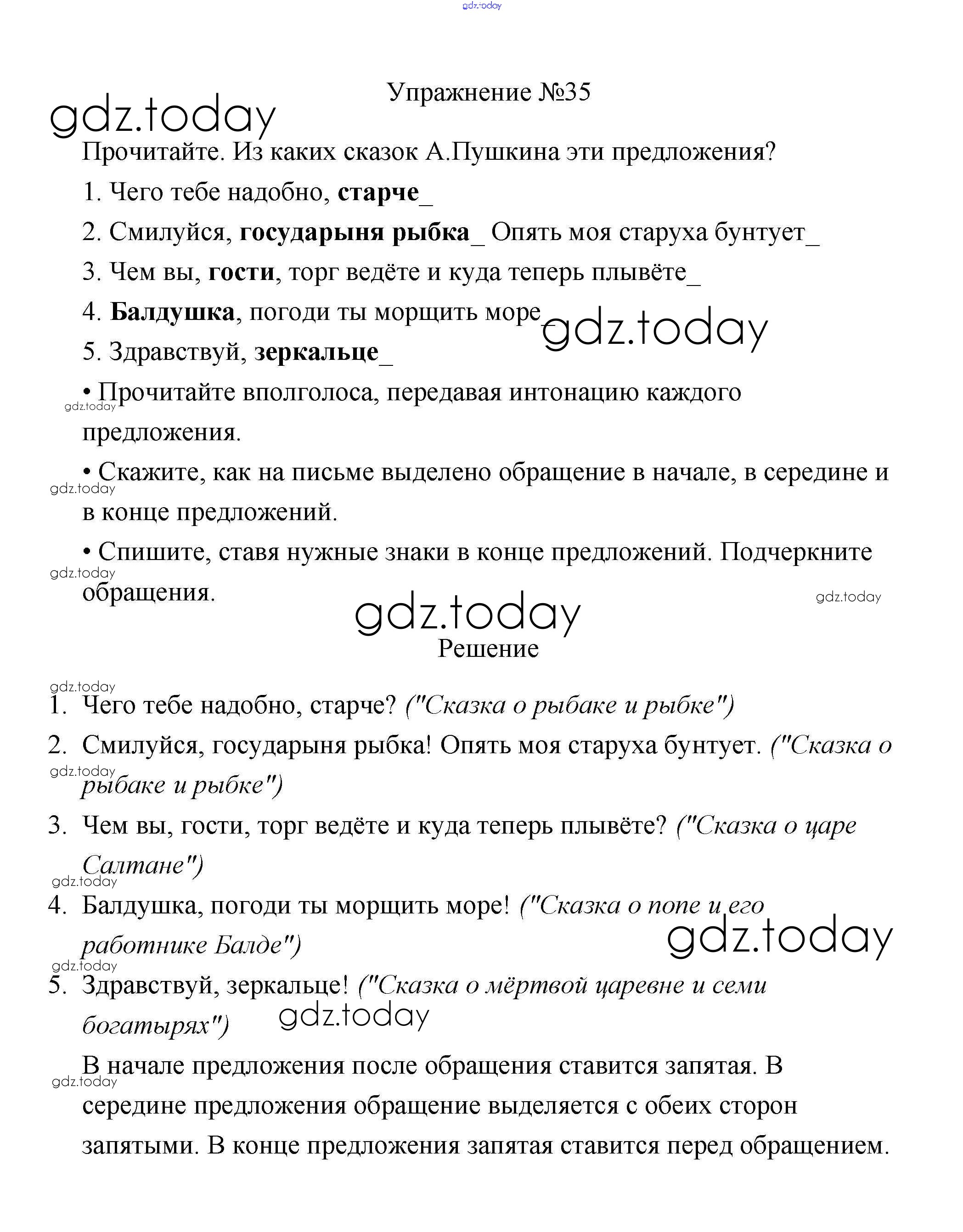 На страницах сайта gdz.today вы найдете учебный и вспомогательный материал, направленный на улучшения знаний школьной программы. ГДЗ - онлайн мир знаний Упражнения Часть 1 35 Учебнику по Русскому языку для 3 класса Канакина, Горецкий Просвещение Школа России 2013