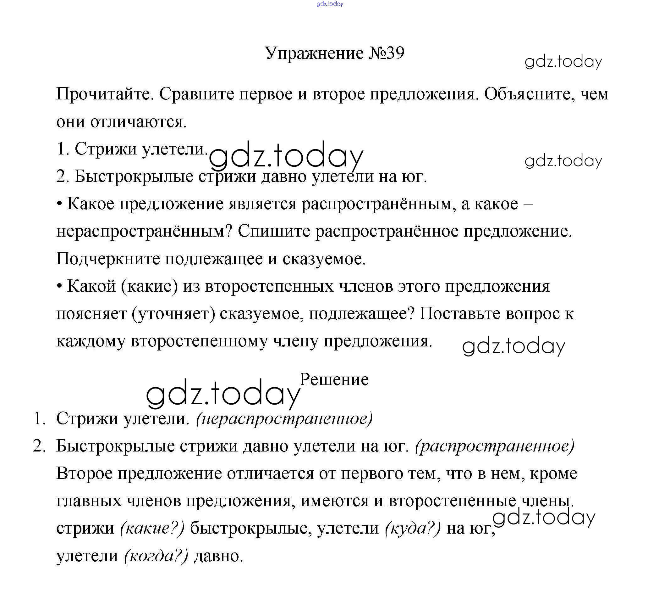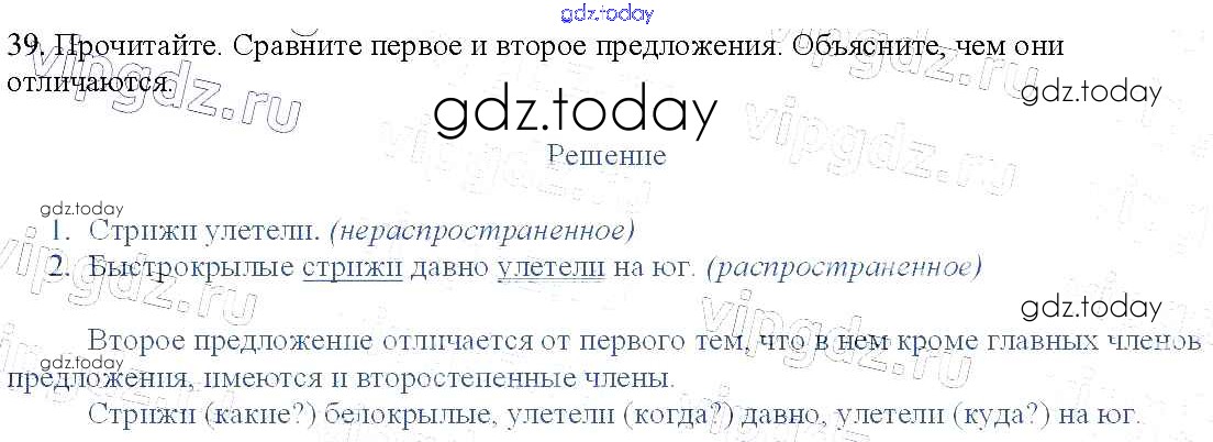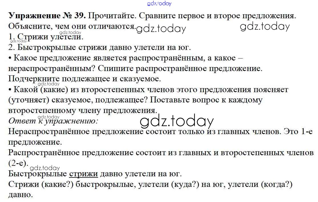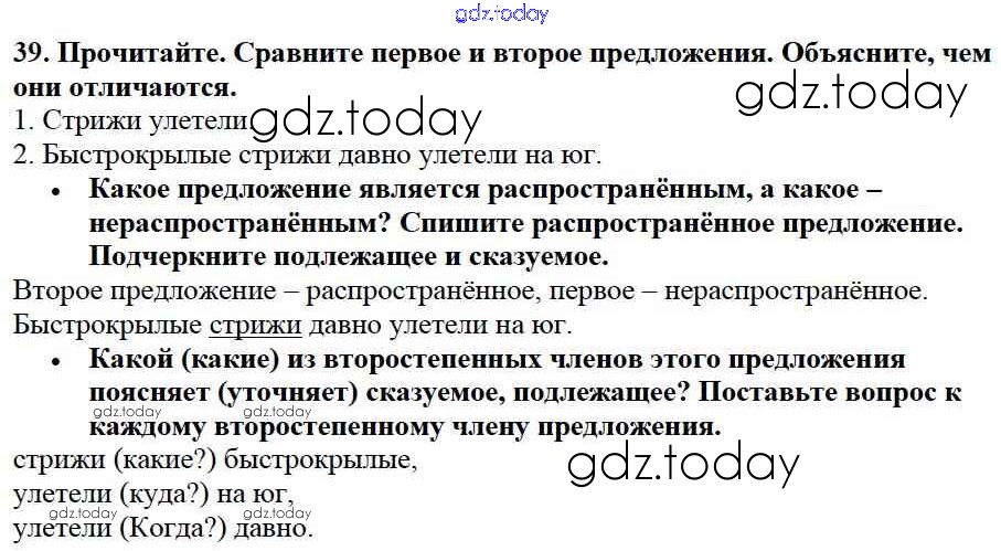 На страницах сайта gdz.today вы найдете учебный и вспомогательный материал, направленный на улучшения знаний школьной программы. ГДЗ - онлайн мир знаний Упражнения Часть 1 39 Учебнику по Русскому языку для 3 класса Канакина, Горецкий Просвещение Школа России 2013