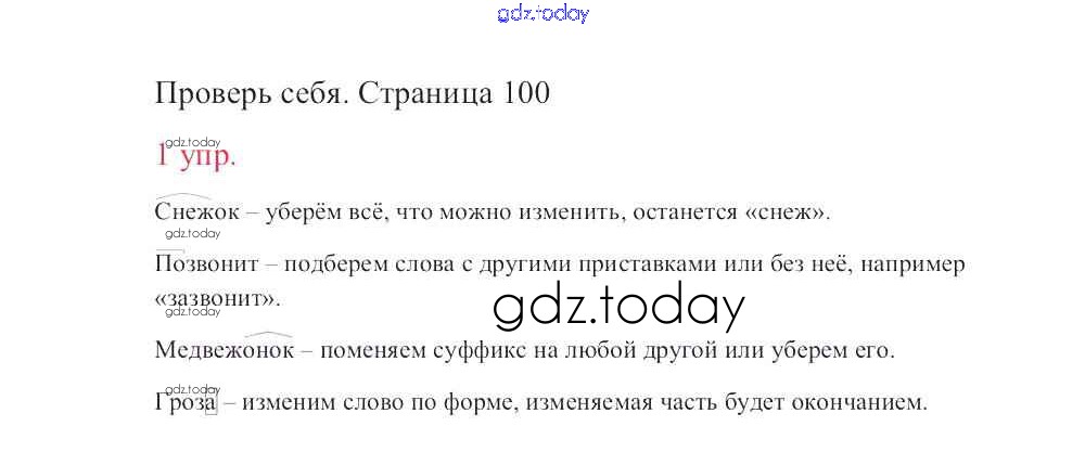 Ответы к Страница 100 Проверь себя 1 Учебнику по Русскому языку для 3 класса Канакина, Горецкий Просвещение Школа России 2013