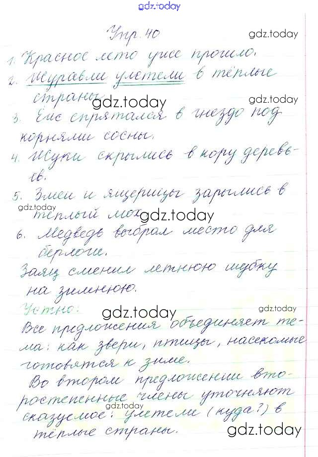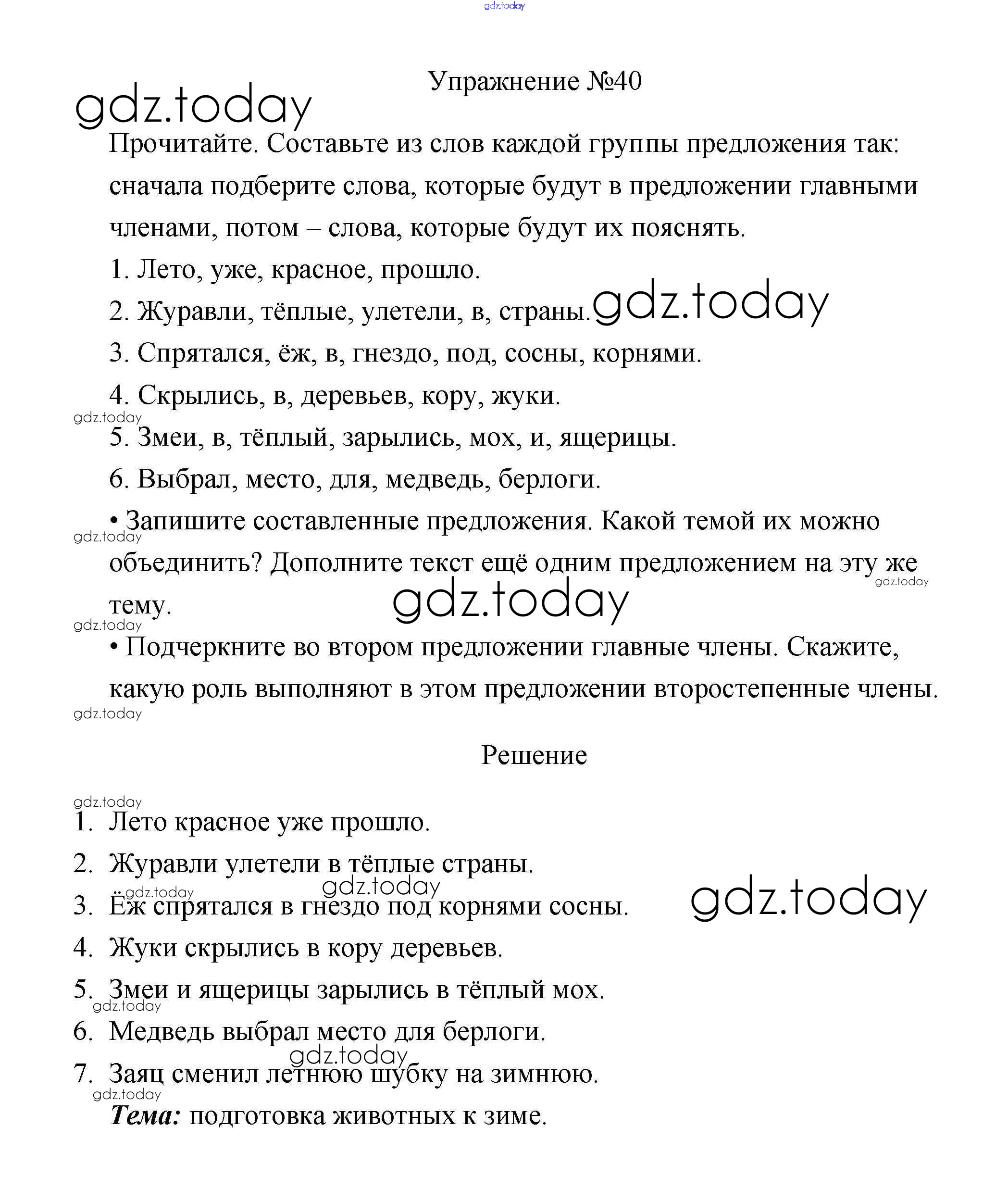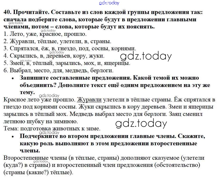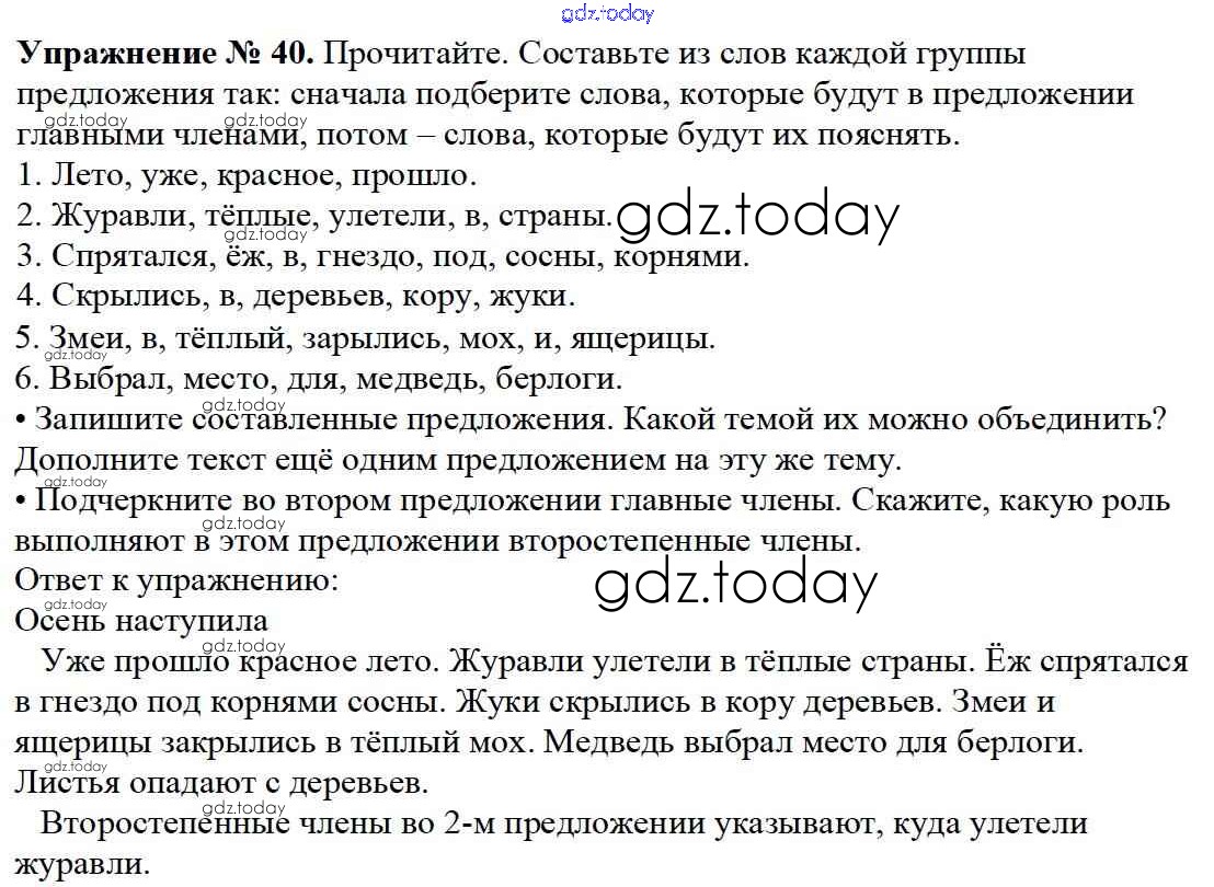 На страницах сайта gdz.today вы найдете учебный и вспомогательный материал, направленный на улучшения знаний школьной программы. ГДЗ - онлайн мир знаний Упражнения Часть 1 40 Учебнику по Русскому языку для 3 класса Канакина, Горецкий Просвещение Школа России 2013