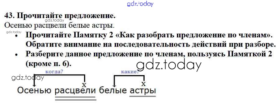 На страницах сайта gdz.today вы найдете учебный и вспомогательный материал, направленный на улучшения знаний школьной программы. ГДЗ - онлайн мир знаний Упражнения Часть 1 43 Учебнику по Русскому языку для 3 класса Канакина, Горецкий Просвещение Школа России 2013