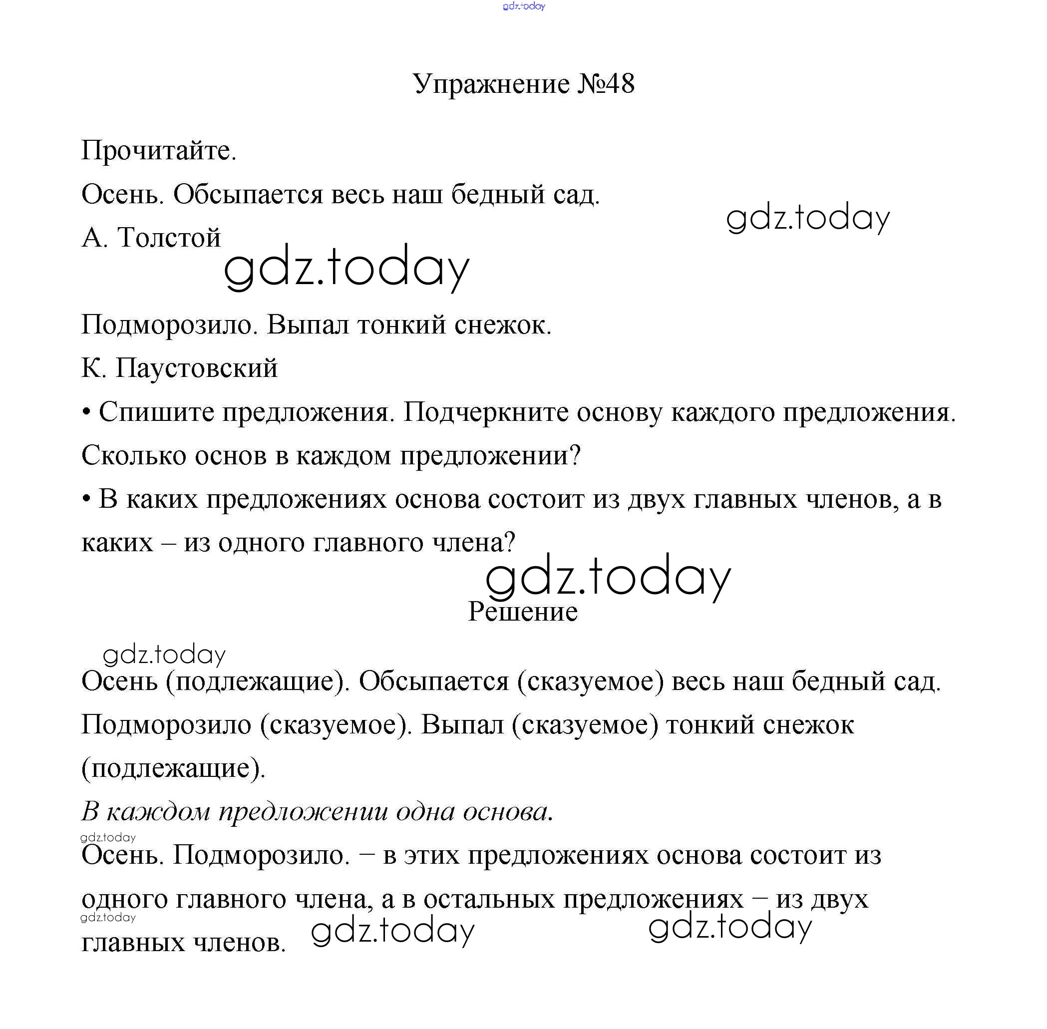 На страницах сайта gdz.today вы найдете учебный и вспомогательный материал, направленный на улучшения знаний школьной программы. ГДЗ - онлайн мир знаний Упражнения Часть 1 48 Учебнику по Русскому языку для 3 класса Канакина, Горецкий Просвещение Школа России 2013