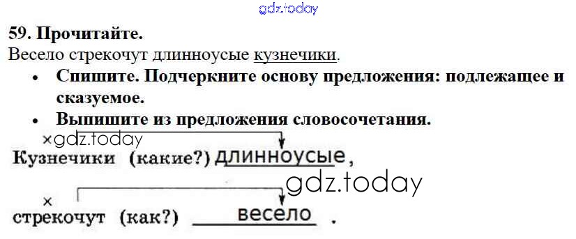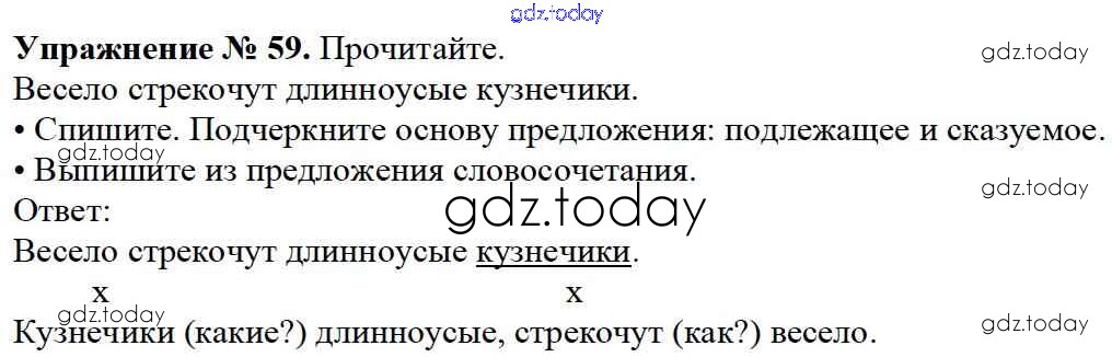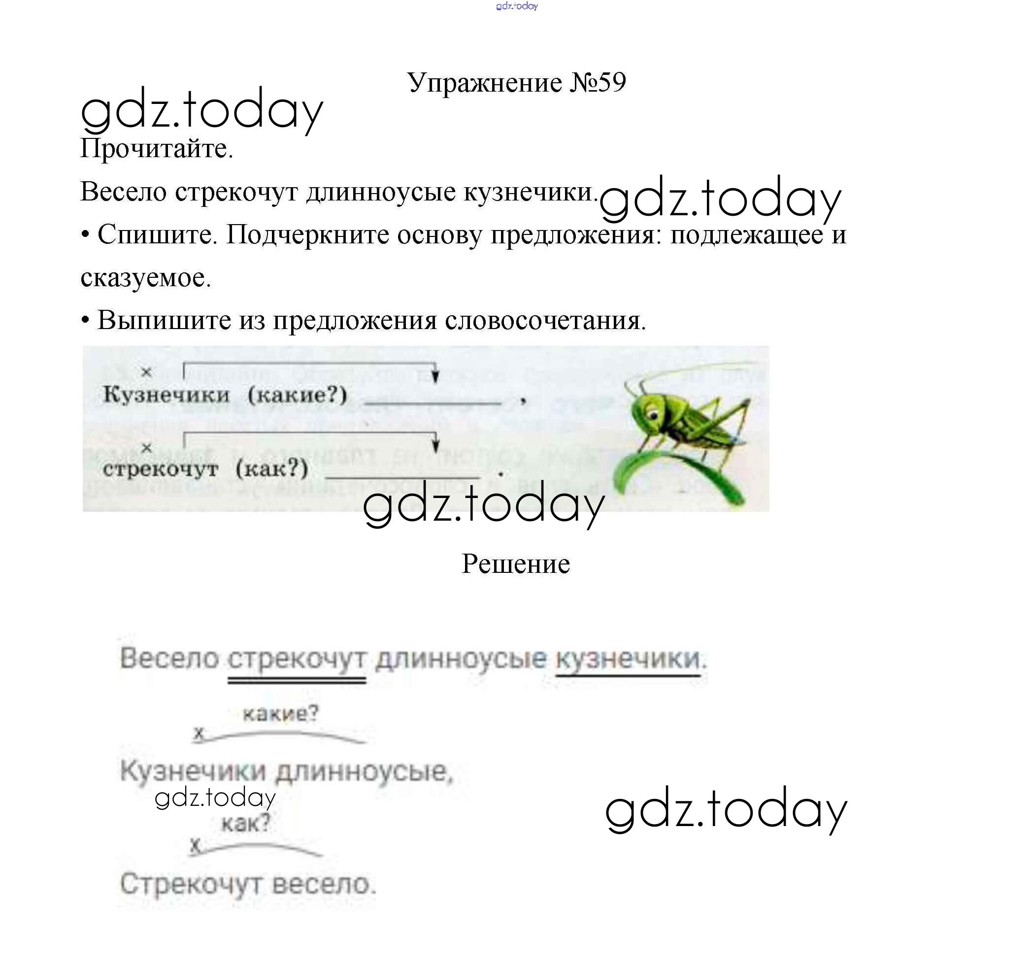 На страницах сайта gdz.today вы найдете учебный и вспомогательный материал, направленный на улучшения знаний школьной программы. ГДЗ - онлайн мир знаний Упражнения Часть 1 59 Учебнику по Русскому языку для 3 класса Канакина, Горецкий Просвещение Школа России 2013