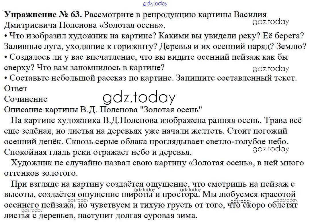 На страницах сайта gdz.today вы найдете учебный и вспомогательный материал, направленный на улучшения знаний школьной программы. ГДЗ - онлайн мир знаний Упражнения Часть 1 63 Учебнику по Русскому языку для 3 класса Канакина, Горецкий Просвещение Школа России 2013