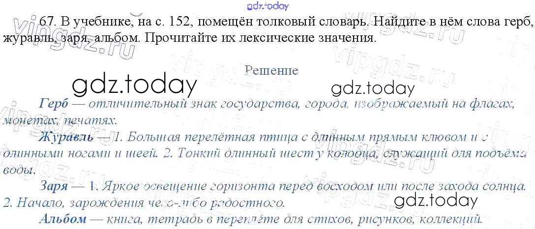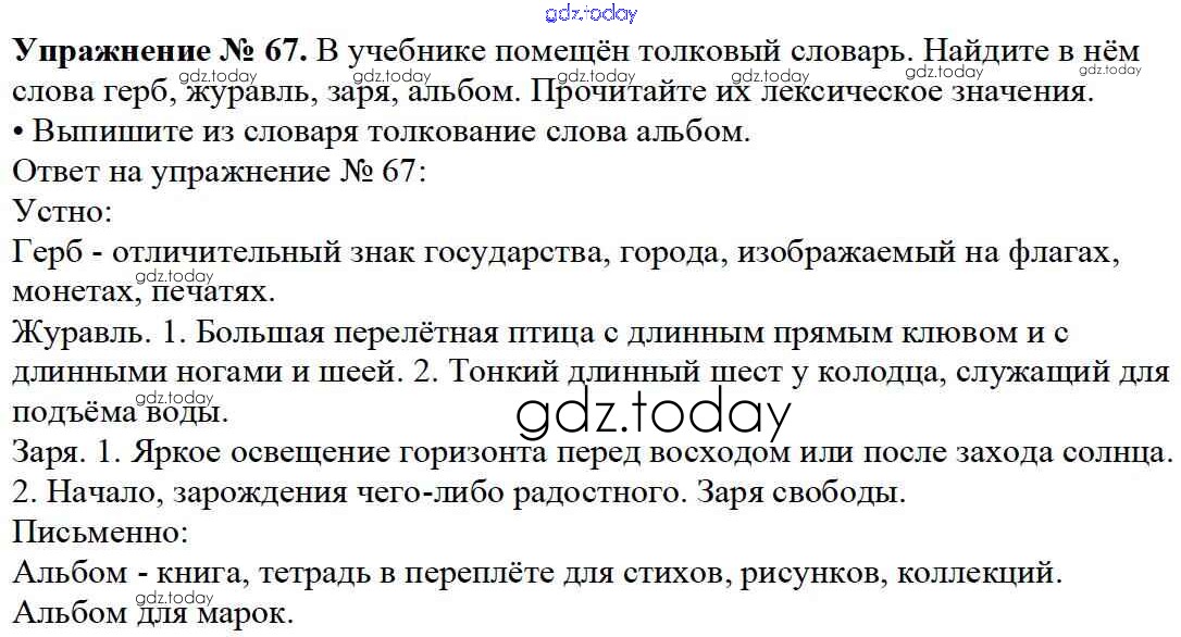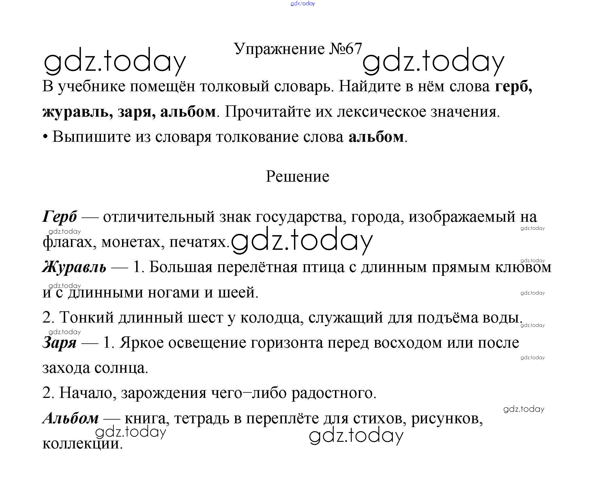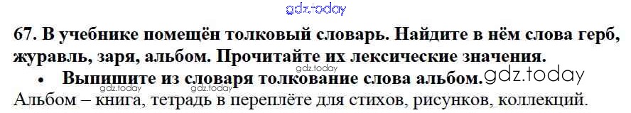 На страницах сайта gdz.today вы найдете учебный и вспомогательный материал, направленный на улучшения знаний школьной программы. ГДЗ - онлайн мир знаний Упражнения Часть 1 67 Учебнику по Русскому языку для 3 класса Канакина, Горецкий Просвещение Школа России 2013