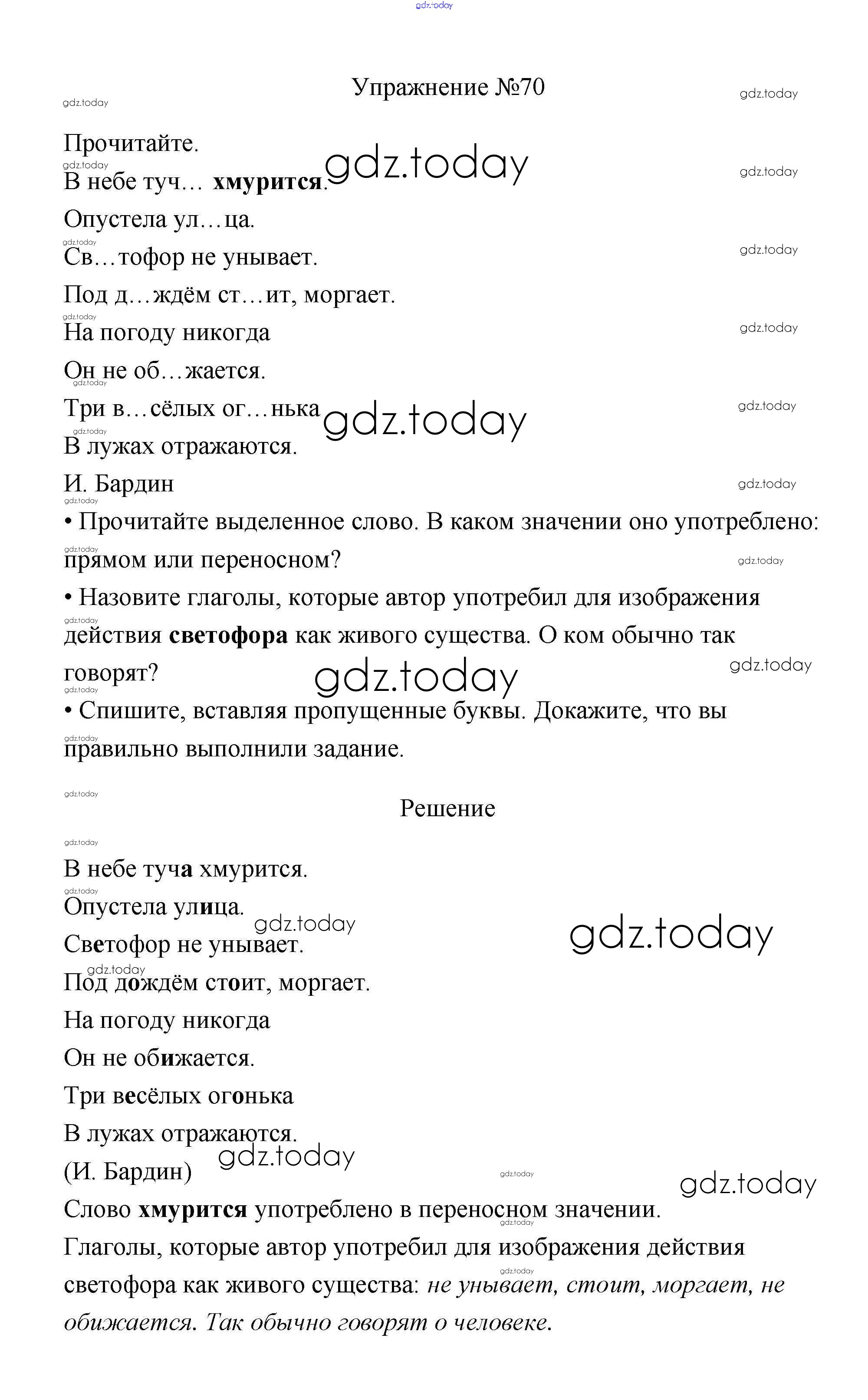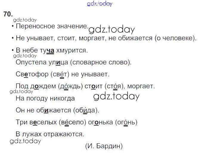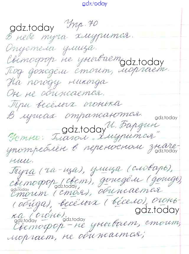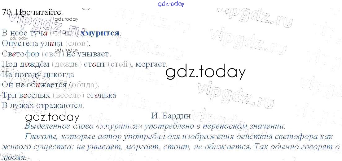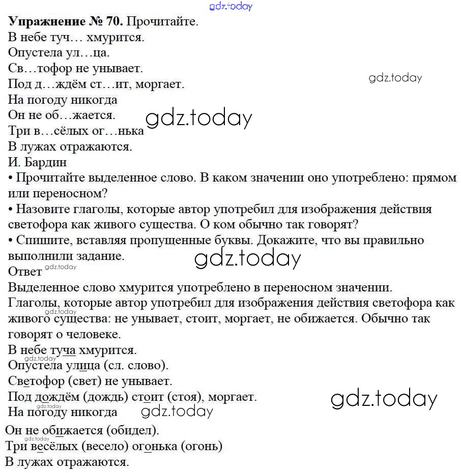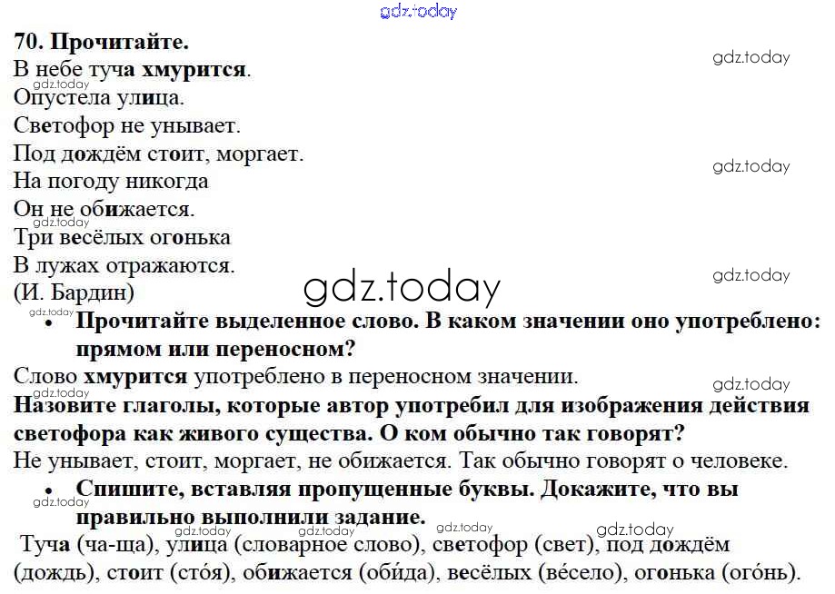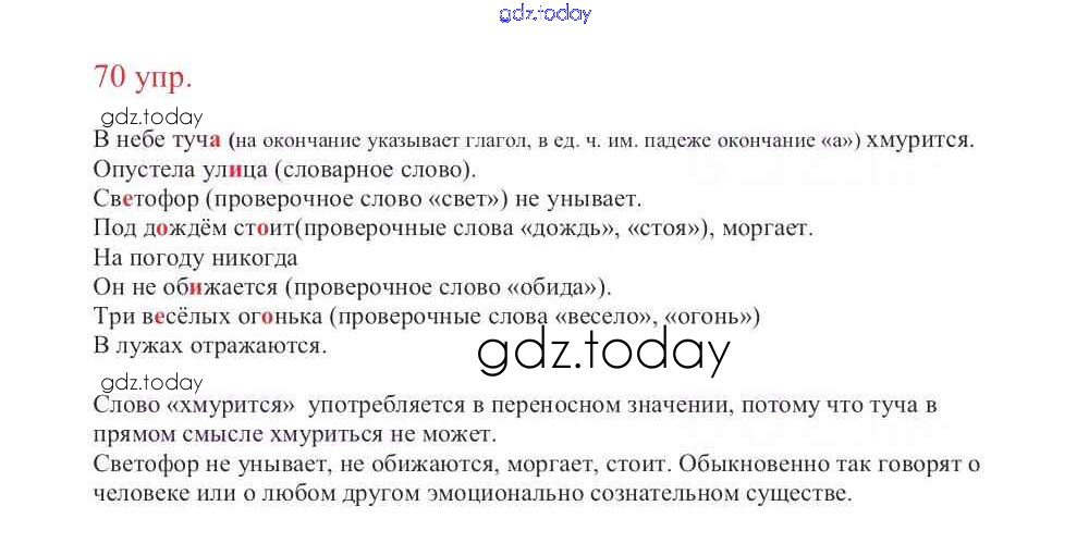 На страницах сайта gdz.today вы найдете учебный и вспомогательный материал, направленный на улучшения знаний школьной программы. ГДЗ - онлайн мир знаний Упражнения Часть 1 70 Учебнику по Русскому языку для 3 класса Канакина, Горецкий Просвещение Школа России 2013