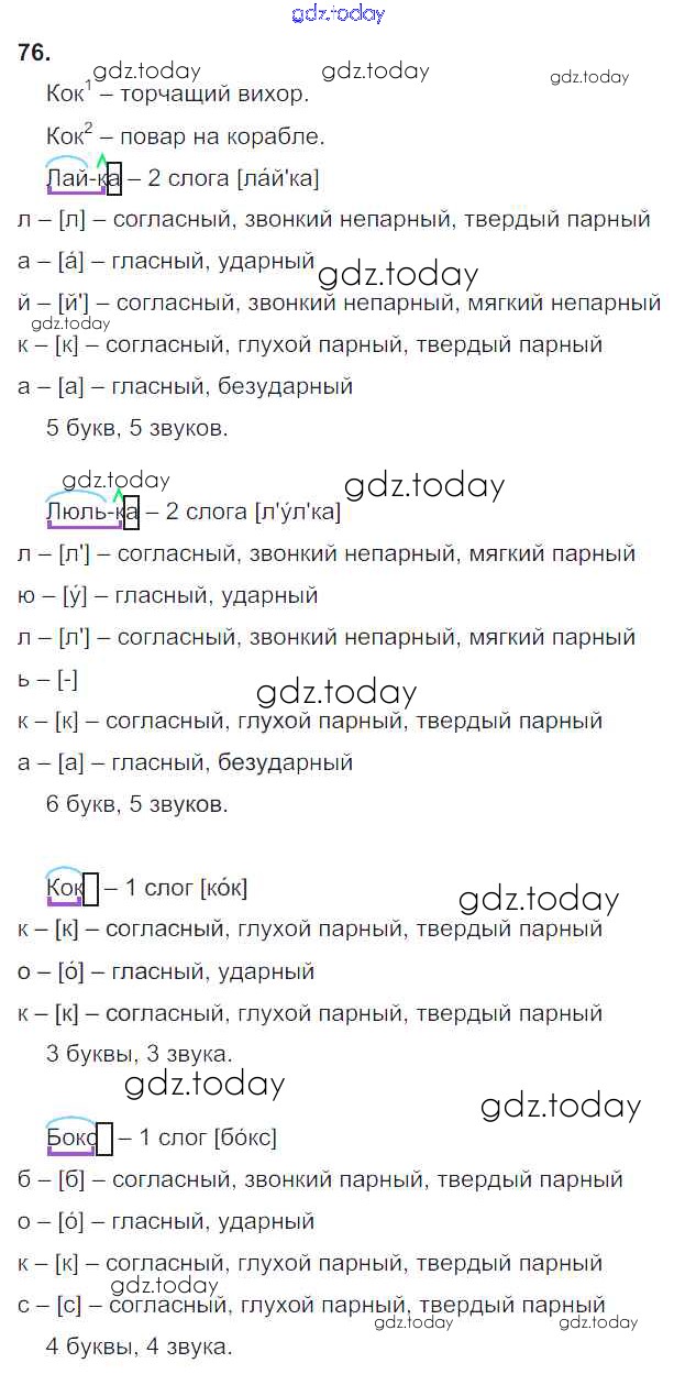 Ответы к Упражнения Часть 1 76 Учебнику по Русскому языку для 3 класса Канакина, Горецкий Просвещение Школа России 2013