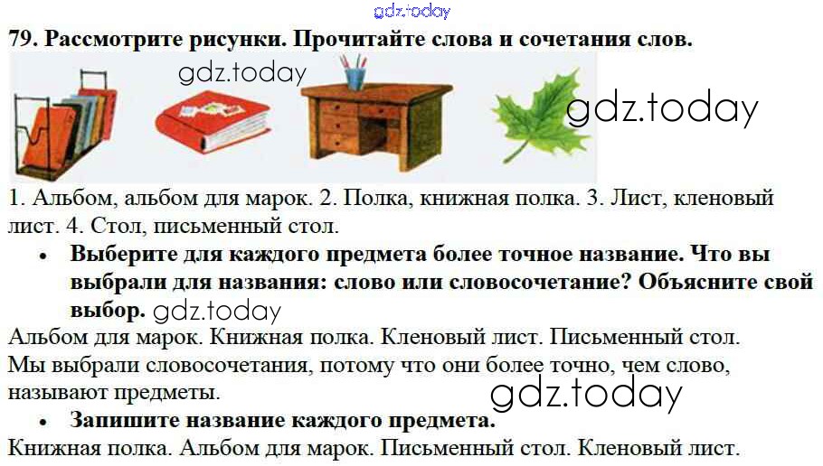 На страницах сайта gdz.today вы найдете учебный и вспомогательный материал, направленный на улучшения знаний школьной программы. ГДЗ - онлайн мир знаний Упражнения Часть 1 79 Учебнику по Русскому языку для 3 класса Канакина, Горецкий Просвещение Школа России 2013