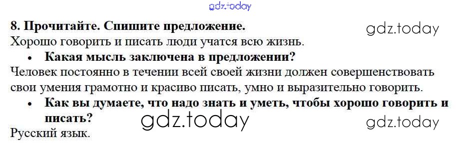 На страницах сайта gdz.today вы найдете учебный и вспомогательный материал, направленный на улучшения знаний школьной программы. ГДЗ - онлайн мир знаний Упражнения Часть 1 8 Учебнику по Русскому языку для 3 класса Канакина, Горецкий Просвещение Школа России 2013