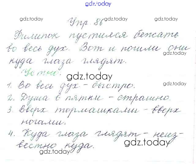 На страницах сайта gdz.today вы найдете учебный и вспомогательный материал, направленный на улучшения знаний школьной программы. ГДЗ - онлайн мир знаний Упражнения Часть 1 86 Учебнику по Русскому языку для 3 класса Канакина, Горецкий Просвещение Школа России 2013