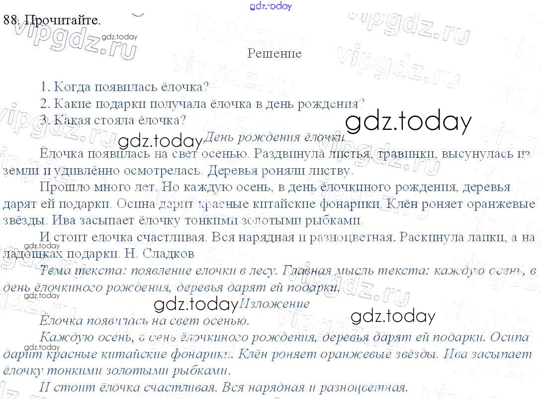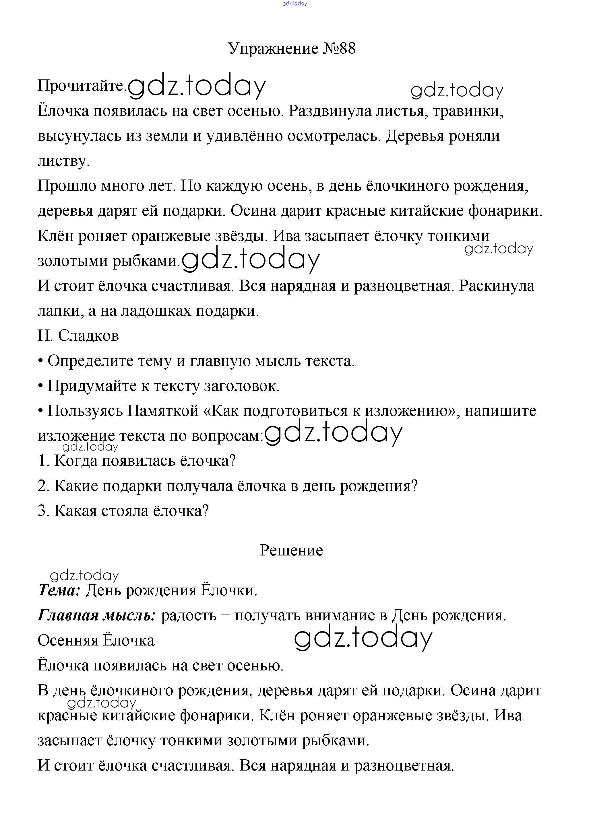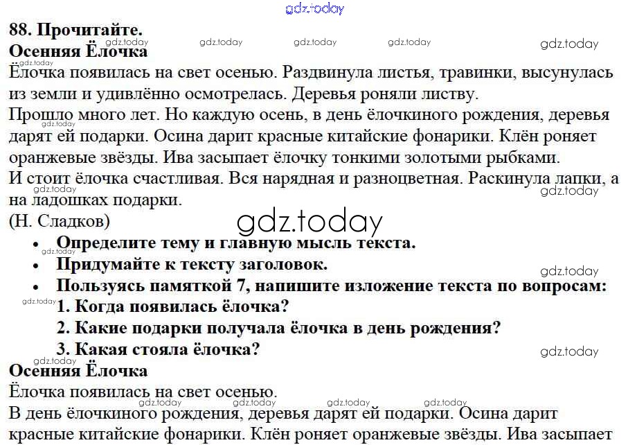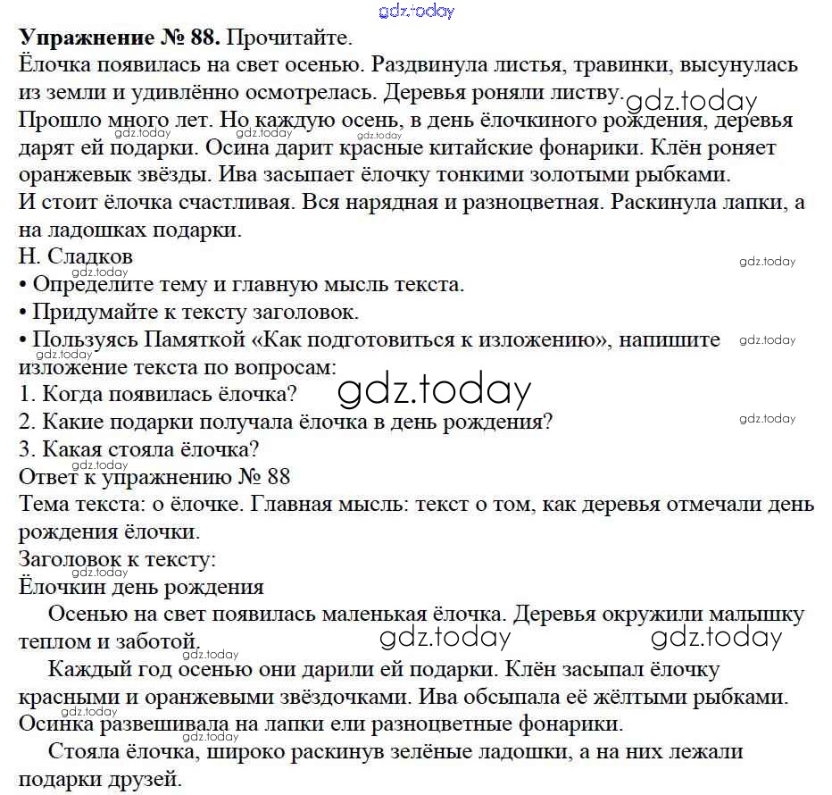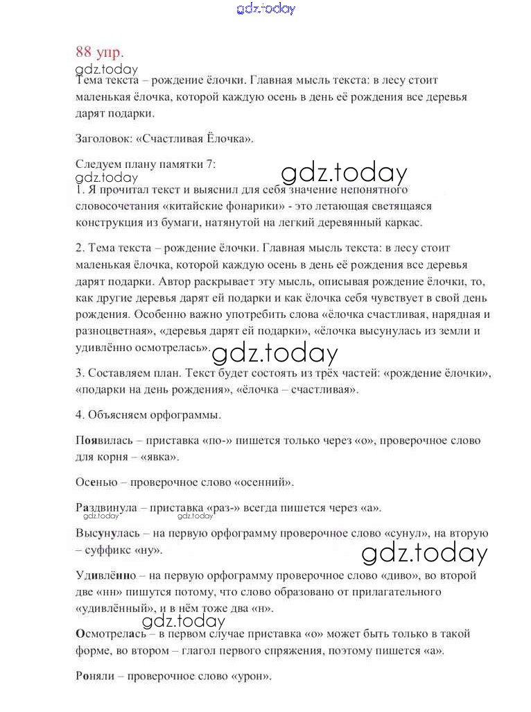 На страницах сайта gdz.today вы найдете учебный и вспомогательный материал, направленный на улучшения знаний школьной программы. ГДЗ - онлайн мир знаний Упражнения Часть 1 88 Учебнику по Русскому языку для 3 класса Канакина, Горецкий Просвещение Школа России 2013