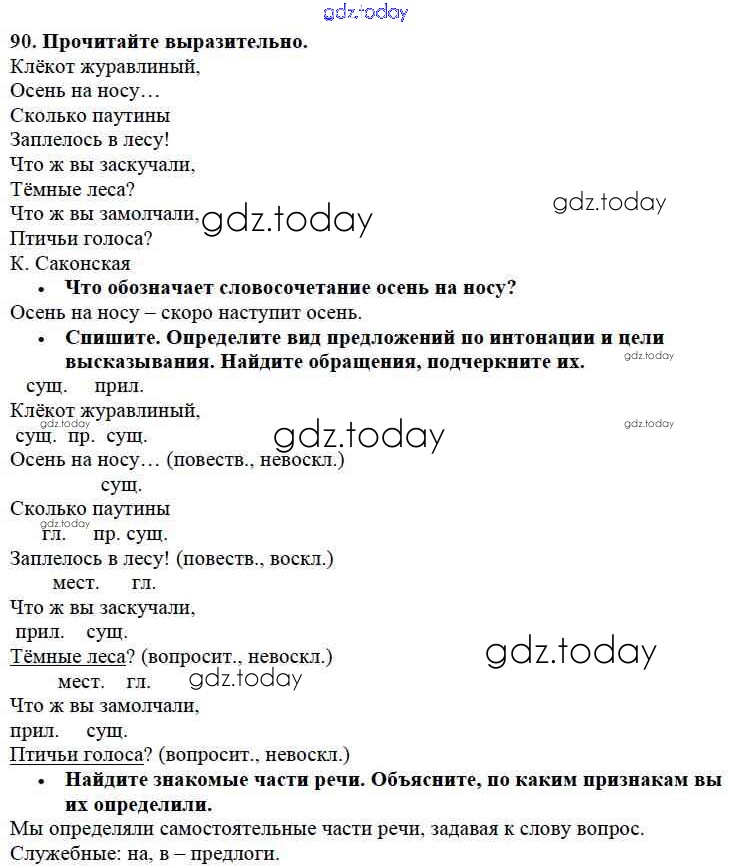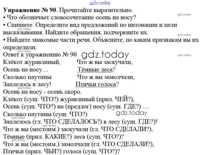 На страницах сайта gdz.today вы найдете учебный и вспомогательный материал, направленный на улучшения знаний школьной программы. ГДЗ - онлайн мир знаний Упражнения Часть 1 90 Учебнику по Русскому языку для 3 класса Канакина, Горецкий Просвещение Школа России 2013
