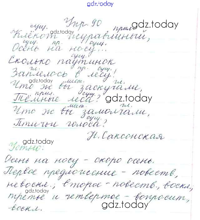 Ответы к Упражнения Часть 1 90 Учебнику по Русскому языку для 3 класса Канакина, Горецкий Просвещение Школа России 2013
