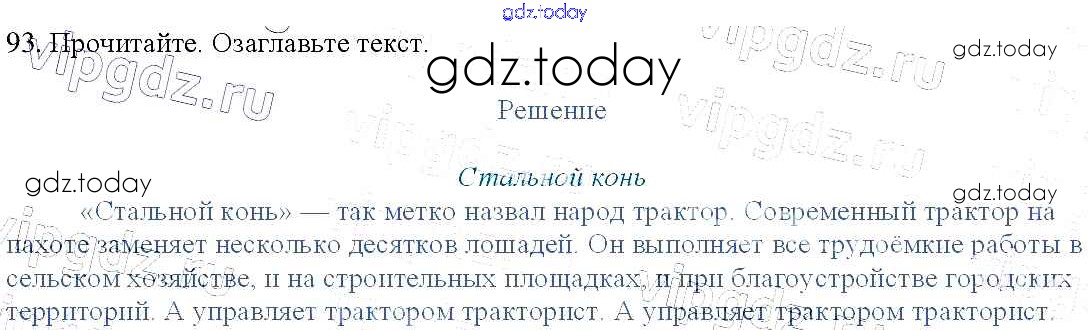 На страницах сайта gdz.today вы найдете учебный и вспомогательный материал, направленный на улучшения знаний школьной программы. ГДЗ - онлайн мир знаний Упражнения Часть 1 93 Учебнику по Русскому языку для 3 класса Канакина, Горецкий Просвещение Школа России 2013