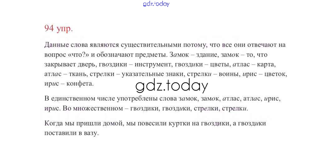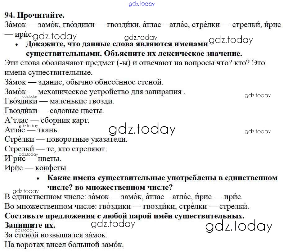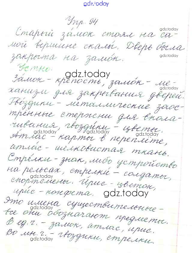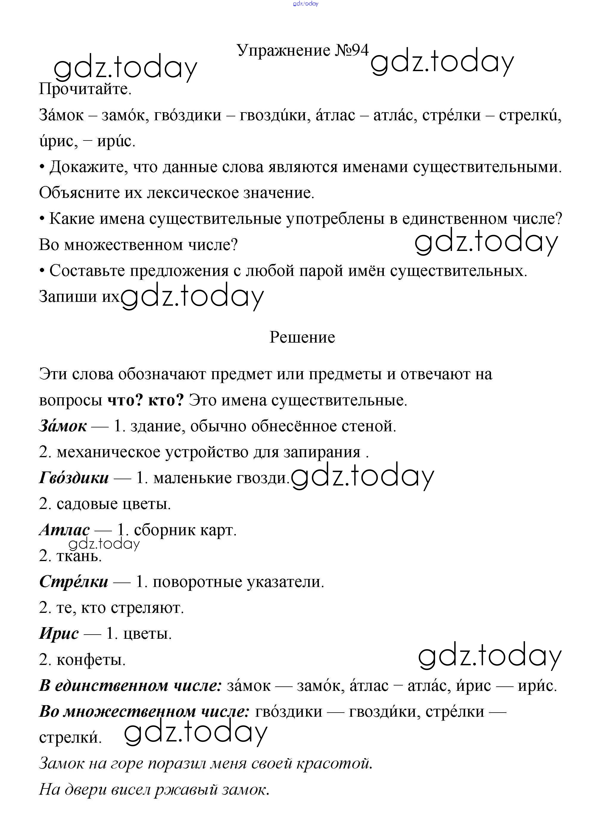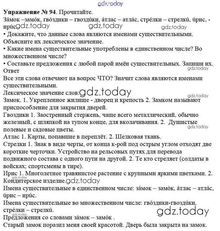 На страницах сайта gdz.today вы найдете учебный и вспомогательный материал, направленный на улучшения знаний школьной программы. ГДЗ - онлайн мир знаний Упражнения Часть 1 94 Учебнику по Русскому языку для 3 класса Канакина, Горецкий Просвещение Школа России 2013