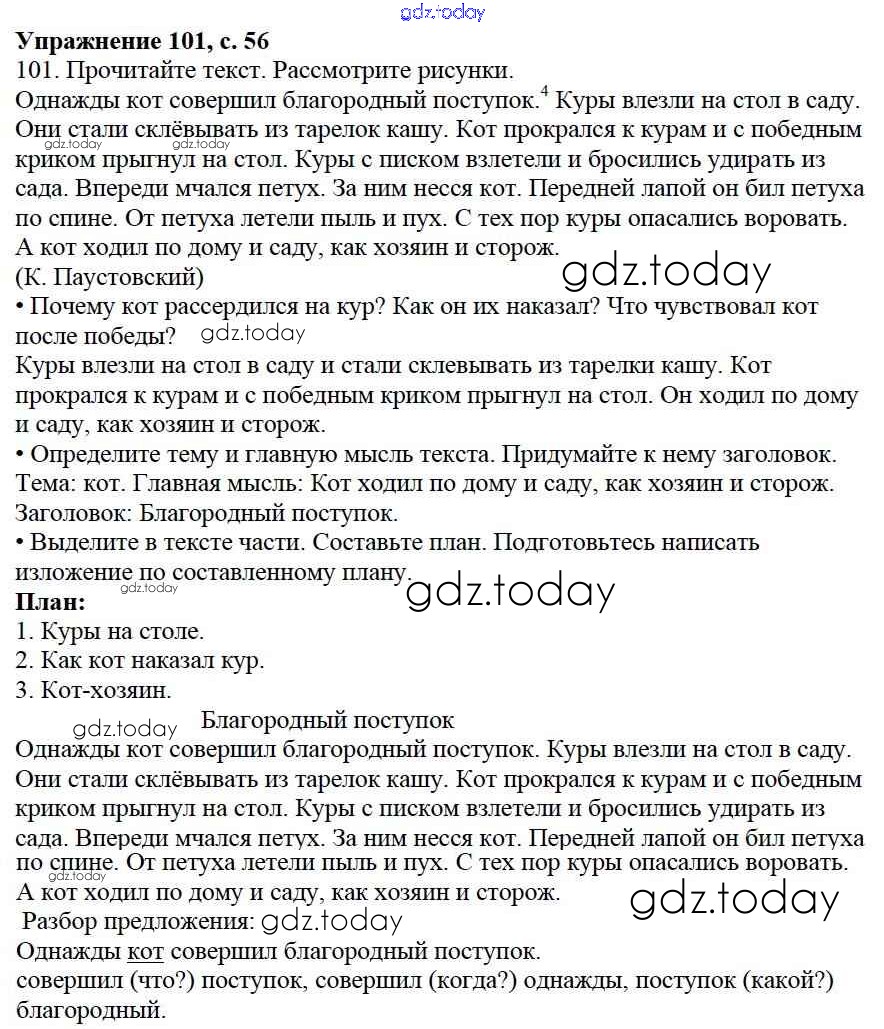 На страницах сайта gdz.today вы найдете учебный и вспомогательный материал, направленный на улучшения знаний школьной программы. ГДЗ - онлайн мир знаний Упражнения Часть 2 101 Учебнику по Русскому языку для 3 класса Канакина, Горецкий Просвещение Школа России 2013