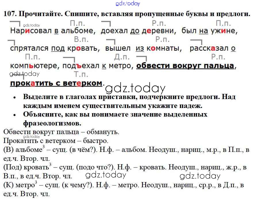 На страницах сайта gdz.today вы найдете учебный и вспомогательный материал, направленный на улучшения знаний школьной программы. ГДЗ - онлайн мир знаний Упражнения Часть 2 107 Учебнику по Русскому языку для 3 класса Канакина, Горецкий Просвещение Школа России 2013