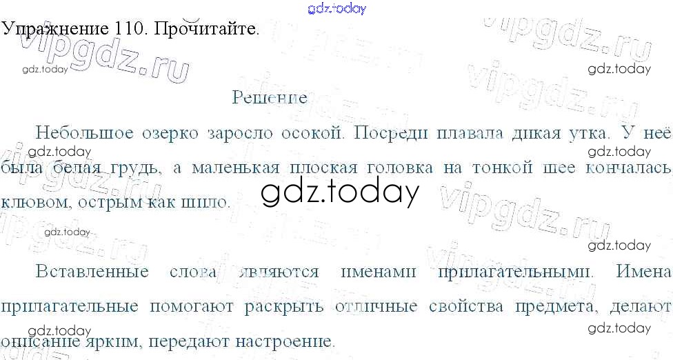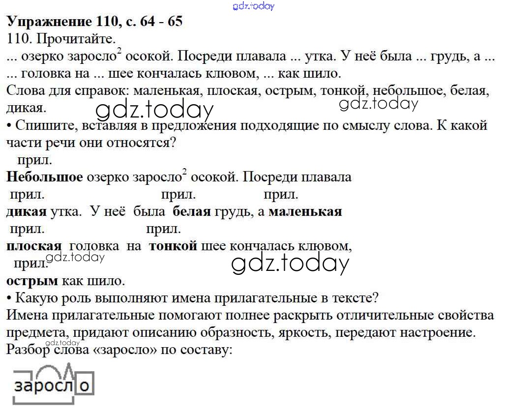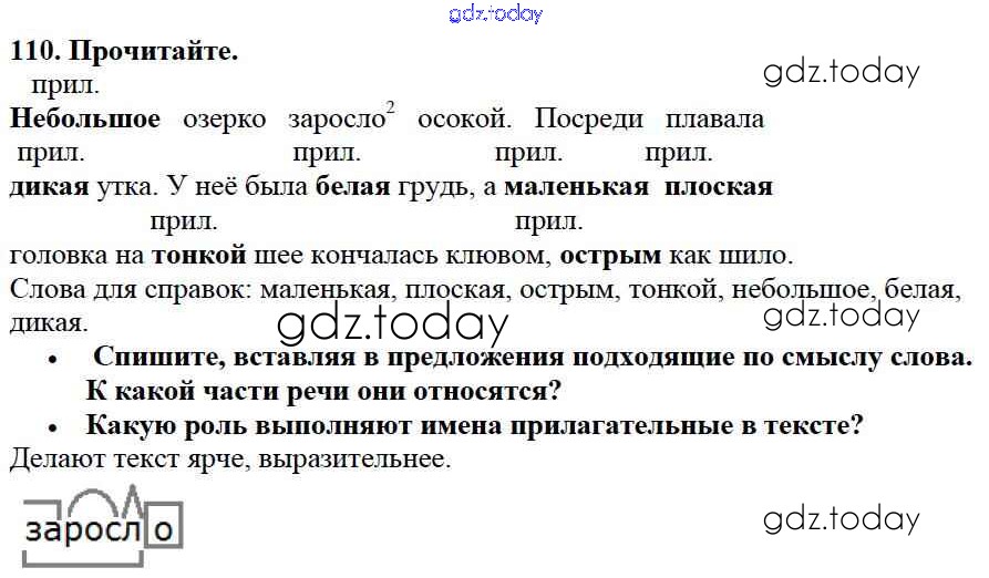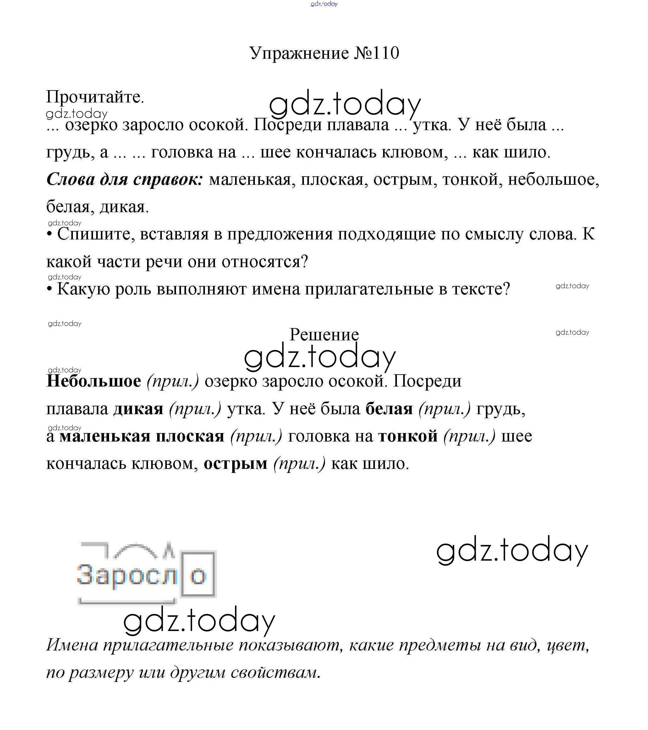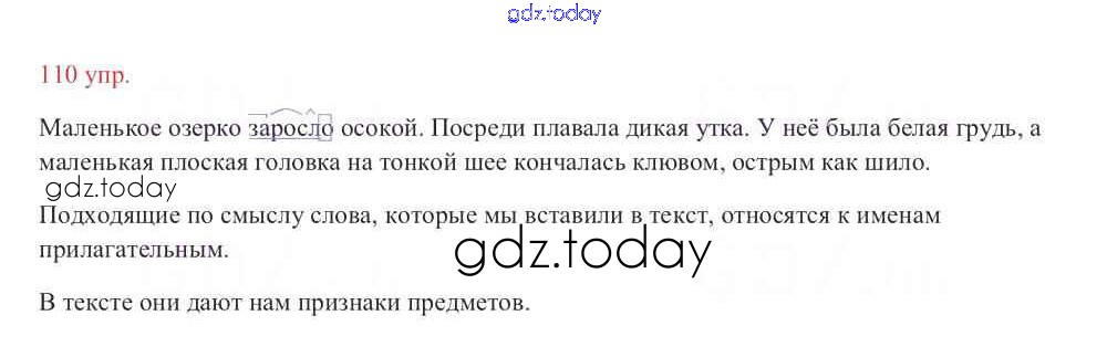 На страницах сайта gdz.today вы найдете учебный и вспомогательный материал, направленный на улучшения знаний школьной программы. ГДЗ - онлайн мир знаний Упражнения Часть 2 110 Учебнику по Русскому языку для 3 класса Канакина, Горецкий Просвещение Школа России 2013
