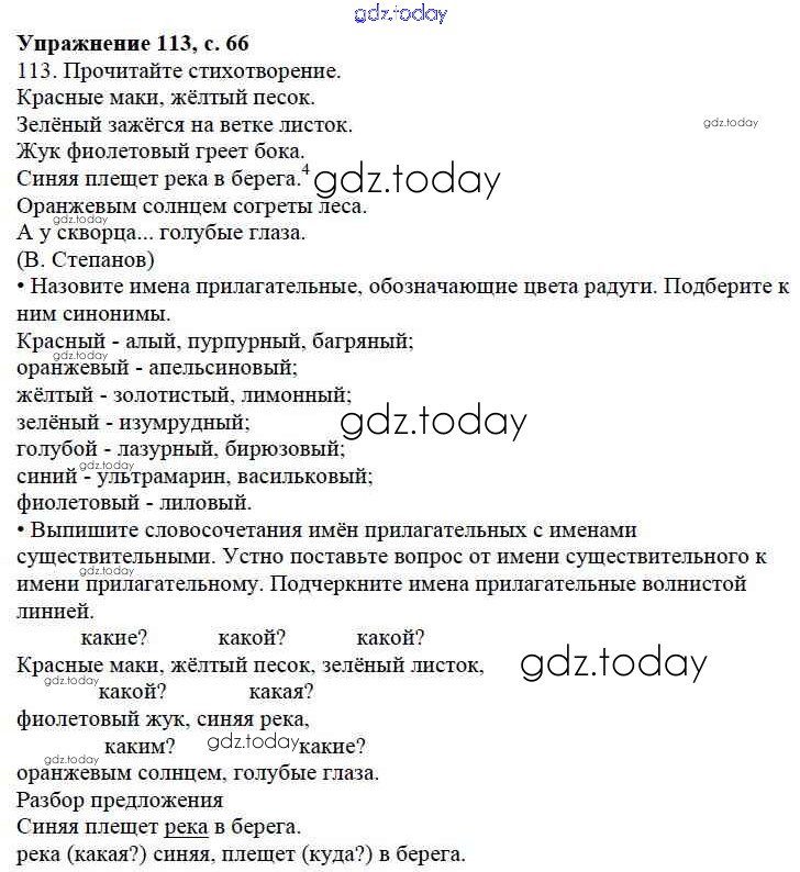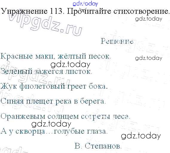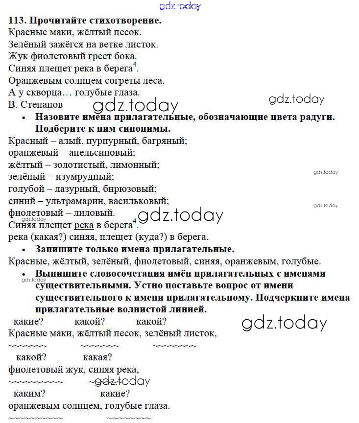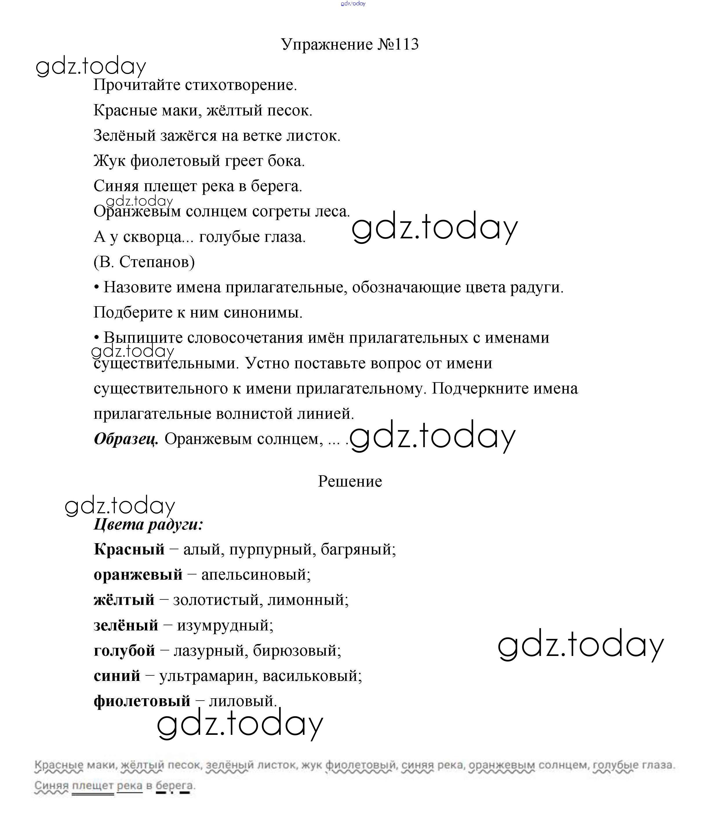 На страницах сайта gdz.today вы найдете учебный и вспомогательный материал, направленный на улучшения знаний школьной программы. ГДЗ - онлайн мир знаний Упражнения Часть 2 113 Учебнику по Русскому языку для 3 класса Канакина, Горецкий Просвещение Школа России 2013